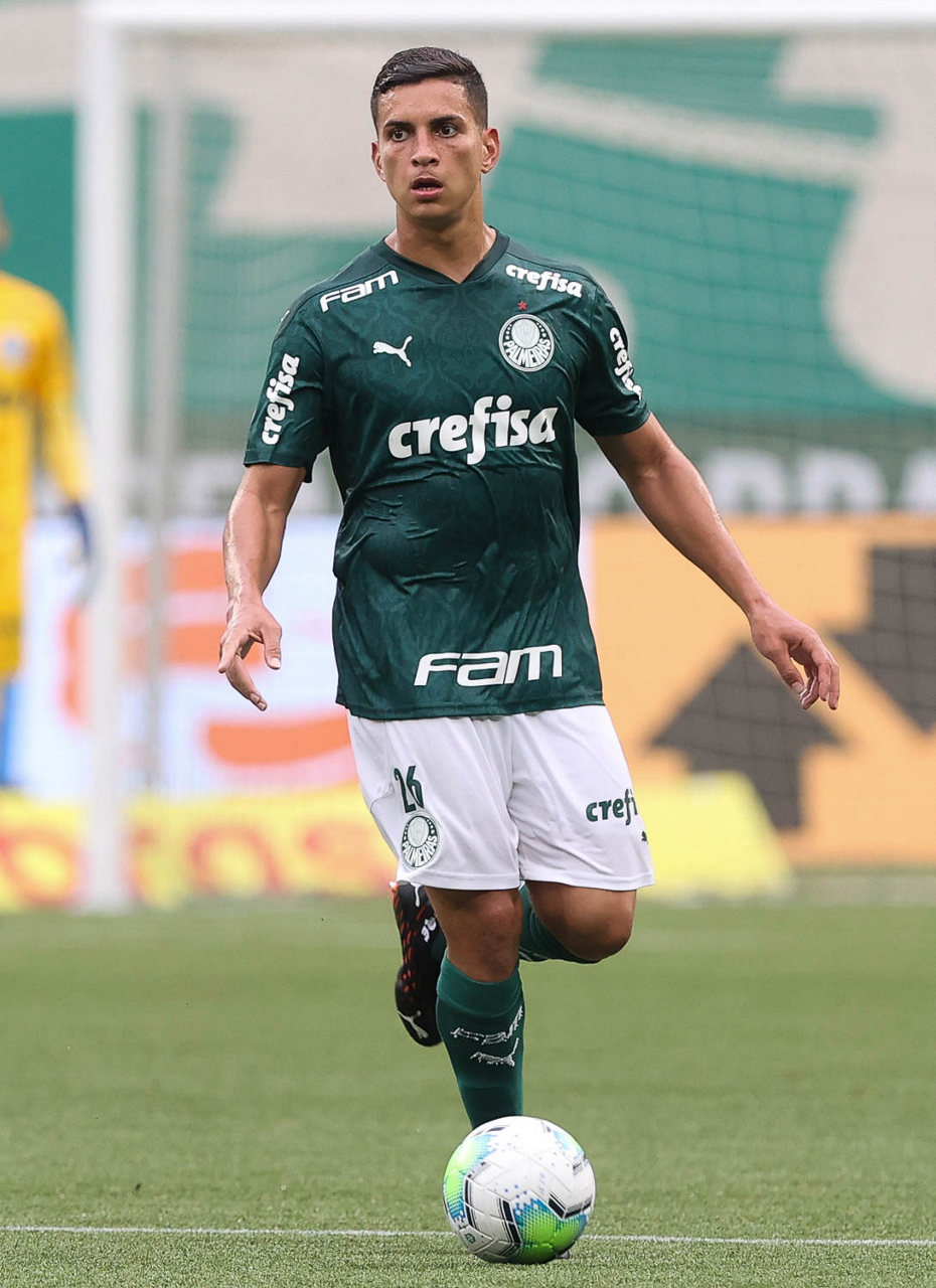 O jogador Gabriel Menino, da SE Palmeiras, em jogo contra a equipe do Botafogo FR, durante partida válida pela trigésima quarta rodada, do Campeonato Brasileiro, Série A, na arena Allianz Parque. (Foto: Cesar Greco)