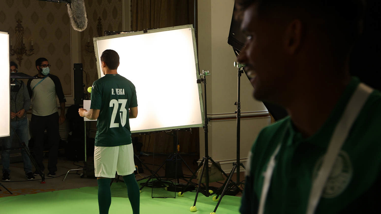 O jogador Gabriel Silva, da SE Palmeiras, durante sessão de gravação de video para a FIFA, na cidade de Doha, Catar. (Foto: Cesar Greco)