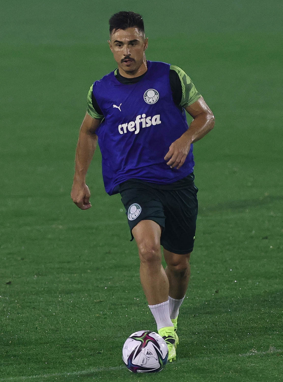 O jogador Matías Viña, da SE Palmeiras, durante treinamento, na cidade de Doha, Catar. (Foto: Cesar Greco)