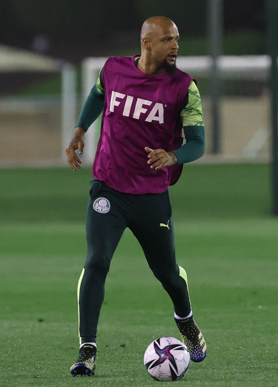 O jogador Felipe Melo, da SE Palmeiras, durante treinamento, na cidade de Doha, Catar. (Foto: Cesar Greco)