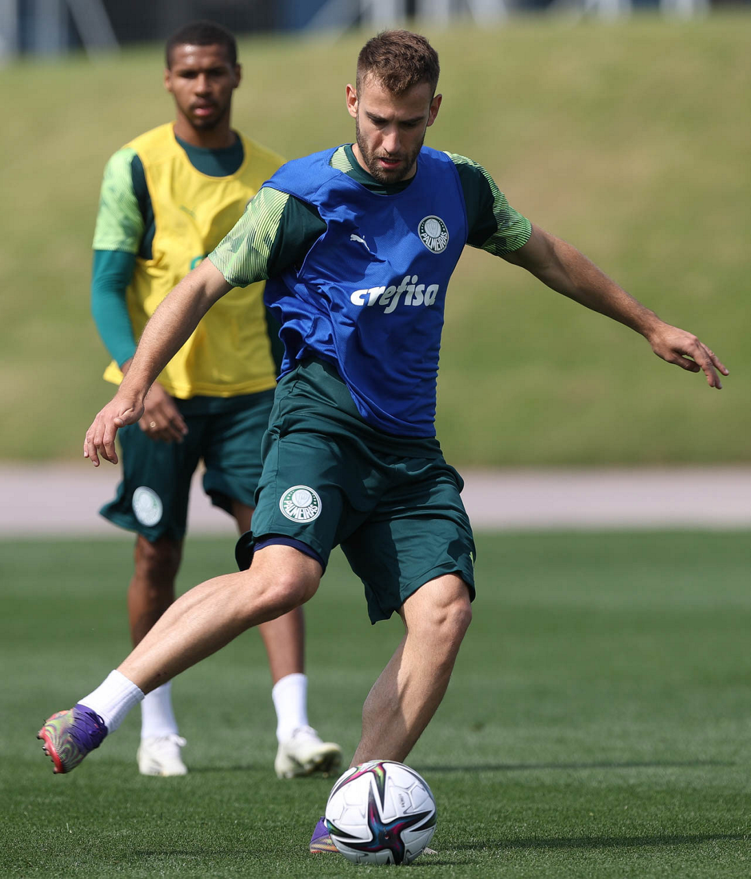 O jogador Breno Lopes, da SE Palmeiras, durante treinamento, em Doha, no Catar. (Foto: Cesar Greco)