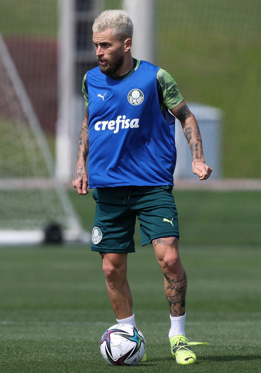 O jogador Lucas Esteves, da SE Palmeiras, durante treinamento, em Doha, no Catar. (Foto: Cesar Greco)