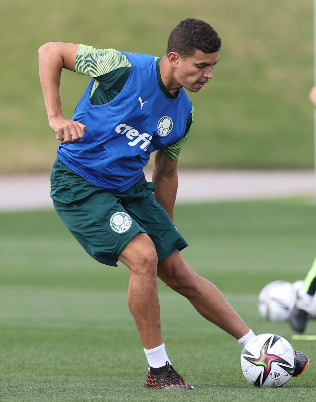 O jogador Gabriel Veron, da SE Palmeiras, durante treinamento, em Doha, no Catar. (Foto: Cesar Greco)