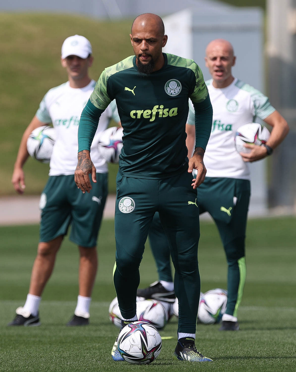O jogador Felipe Melo, da SE Palmeiras, durante treinamento, em Doha, no Catar. (Foto: Cesar Greco)