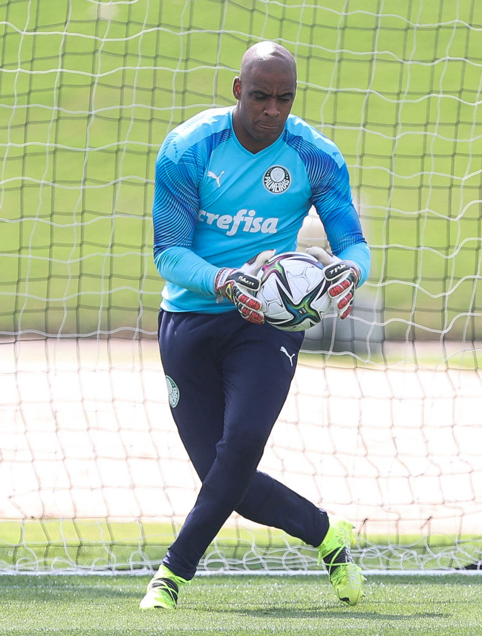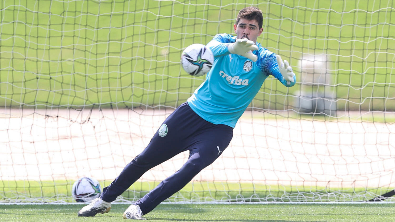 O goleiro Vinicius, da SE Palmeiras, durante treinamento, em Doha, no Catar. (Foto: Cesar Greco)