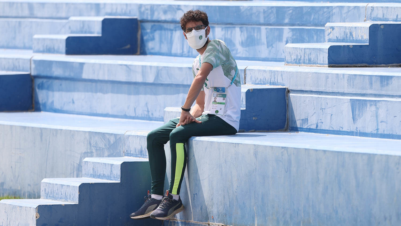 O auxiliar técnico Vitor Castanheira, da SE Palmeiras, durante treinamento, em Doha, no Catar. (Foto: Cesar Greco)