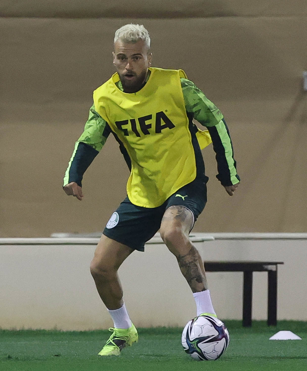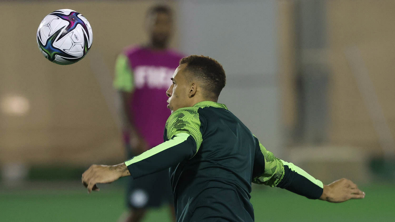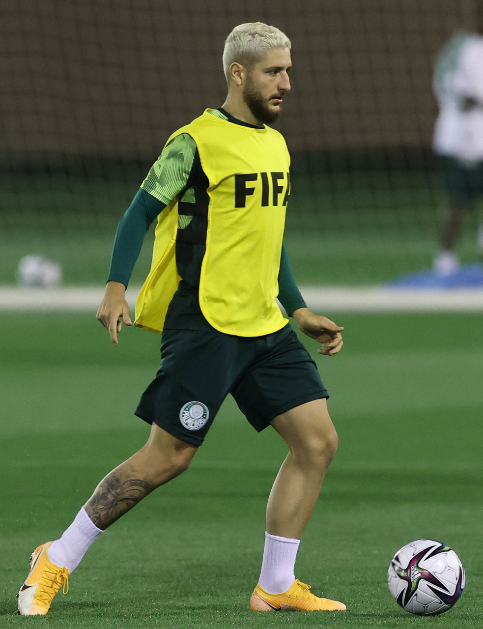 O jogador Breno Lopes, da SE Palmeiras, durante treinamento, em Doha, no Catar. (Foto: Cesar Greco)