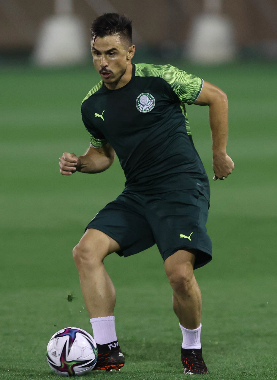 O jogador Patrick de Paula, da SE Palmeiras, durante treinamento, em Doha, no Catar. (Foto: Cesar Greco)