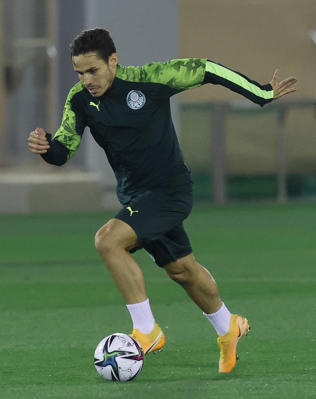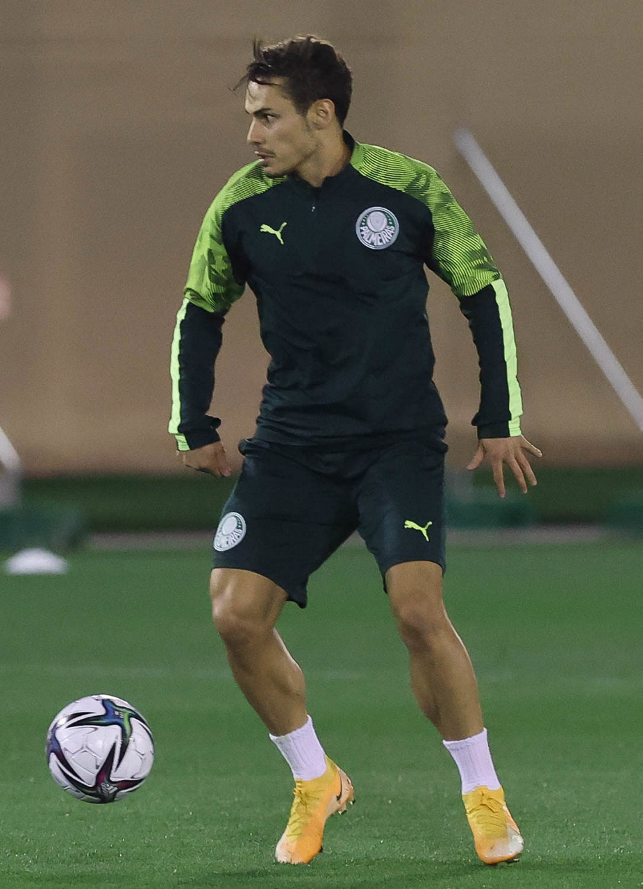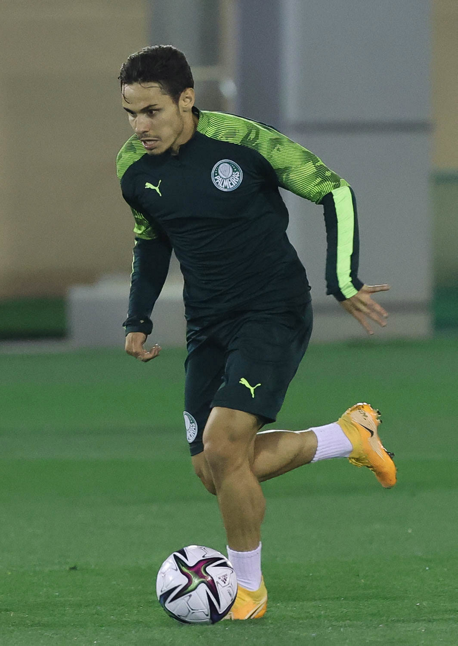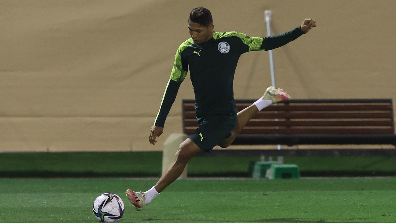 O jogador Raphael Veiga, da SE Palmeiras, durante treinamento, em Doha, no Catar. (Foto: Cesar Greco)