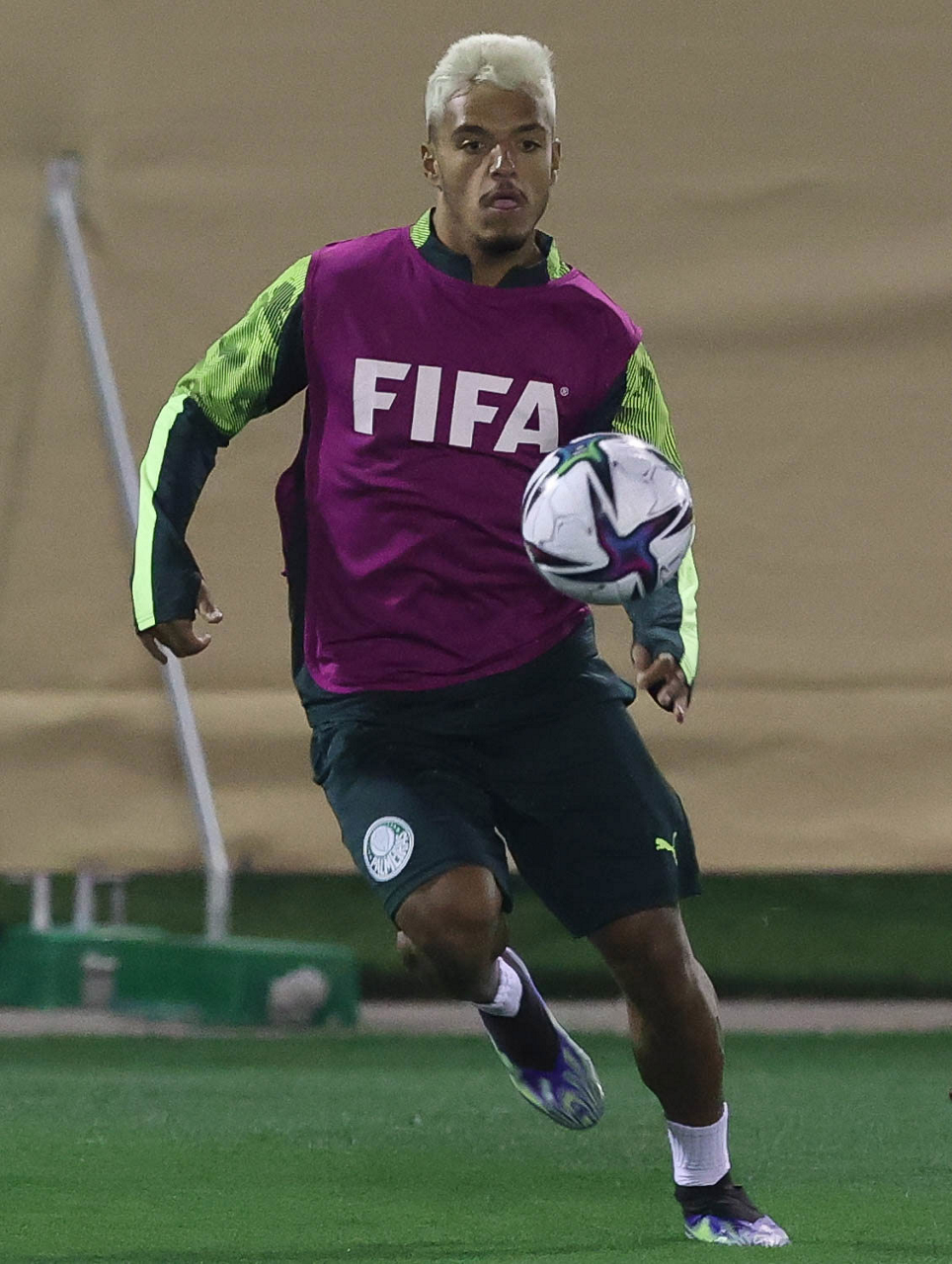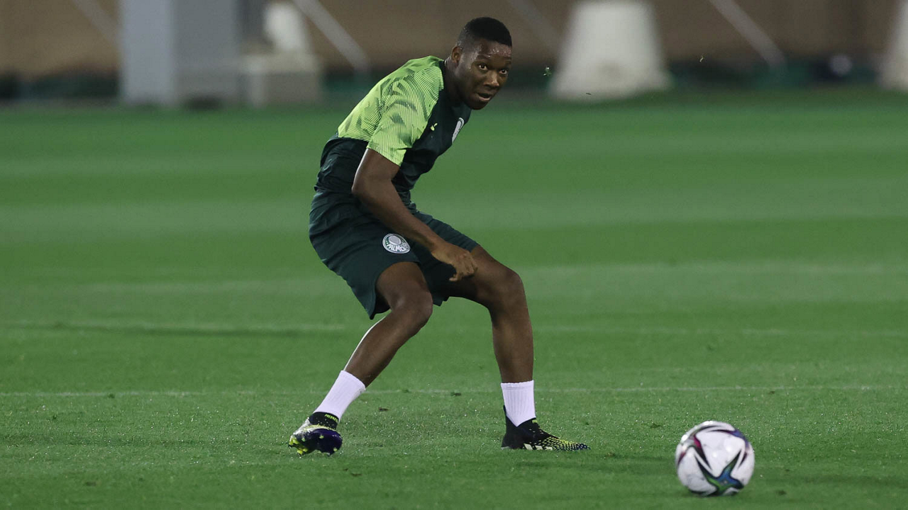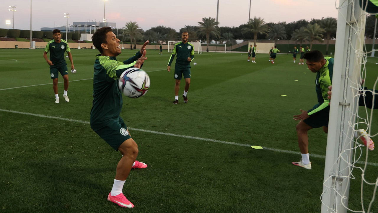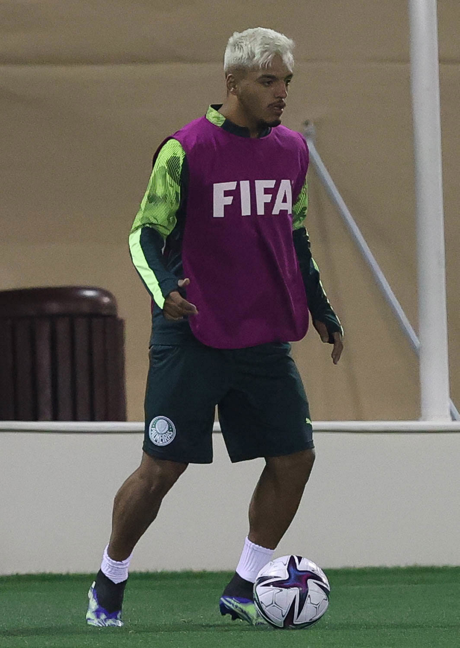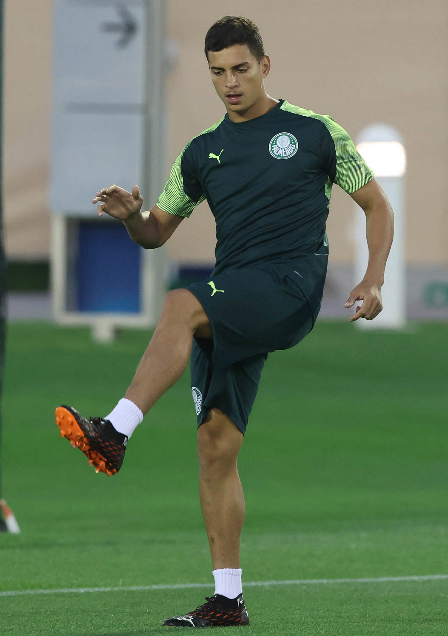 O jogador Gabriel Menino, da SE Palmeiras, durante treinamento, em Doha, no Catar. (Foto: Cesar Greco)