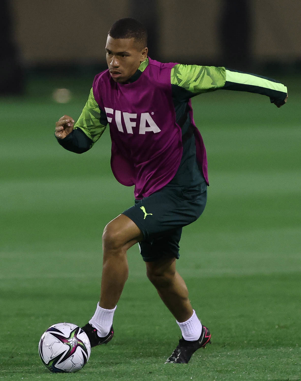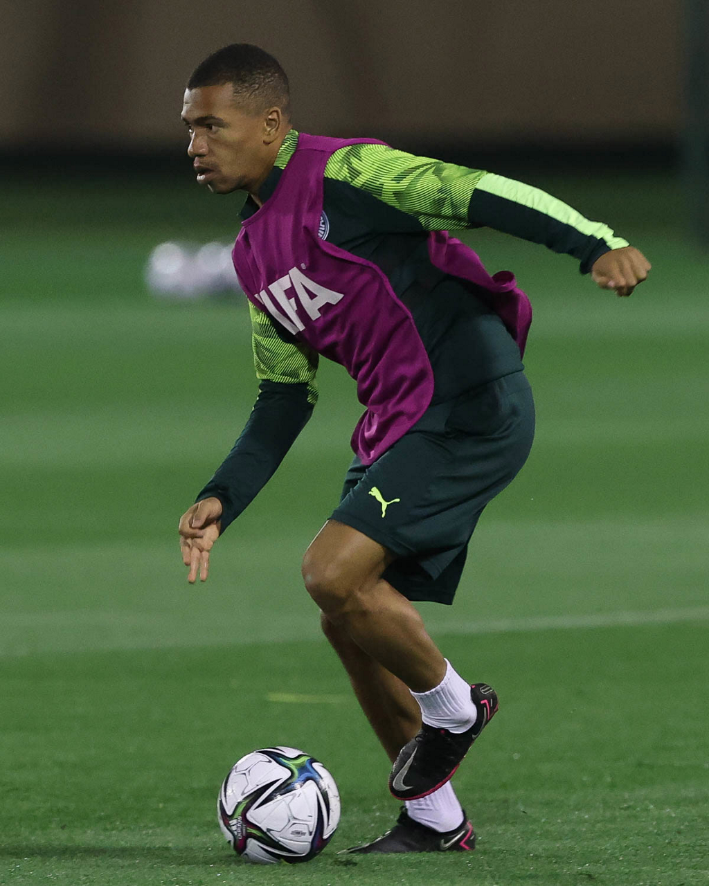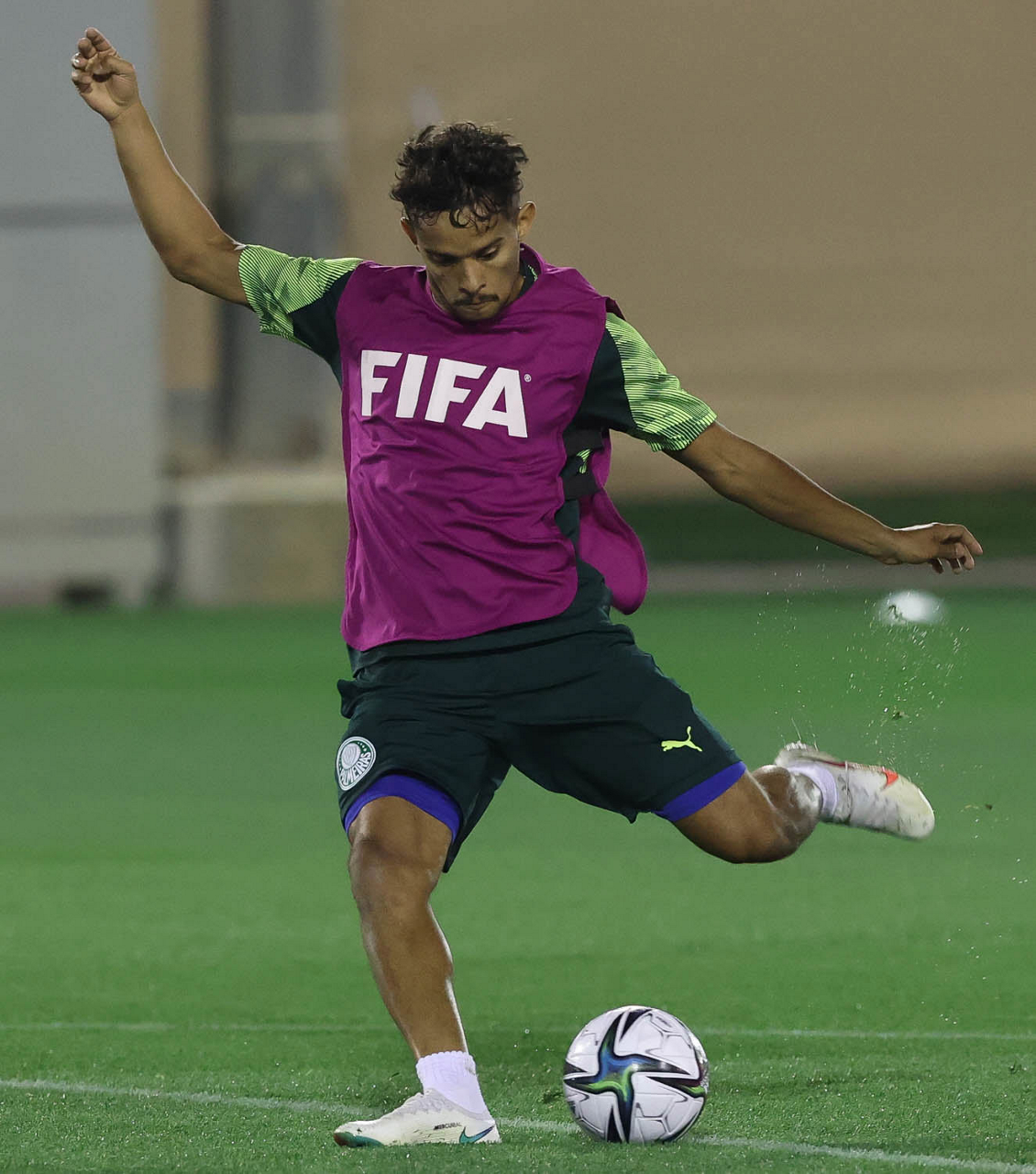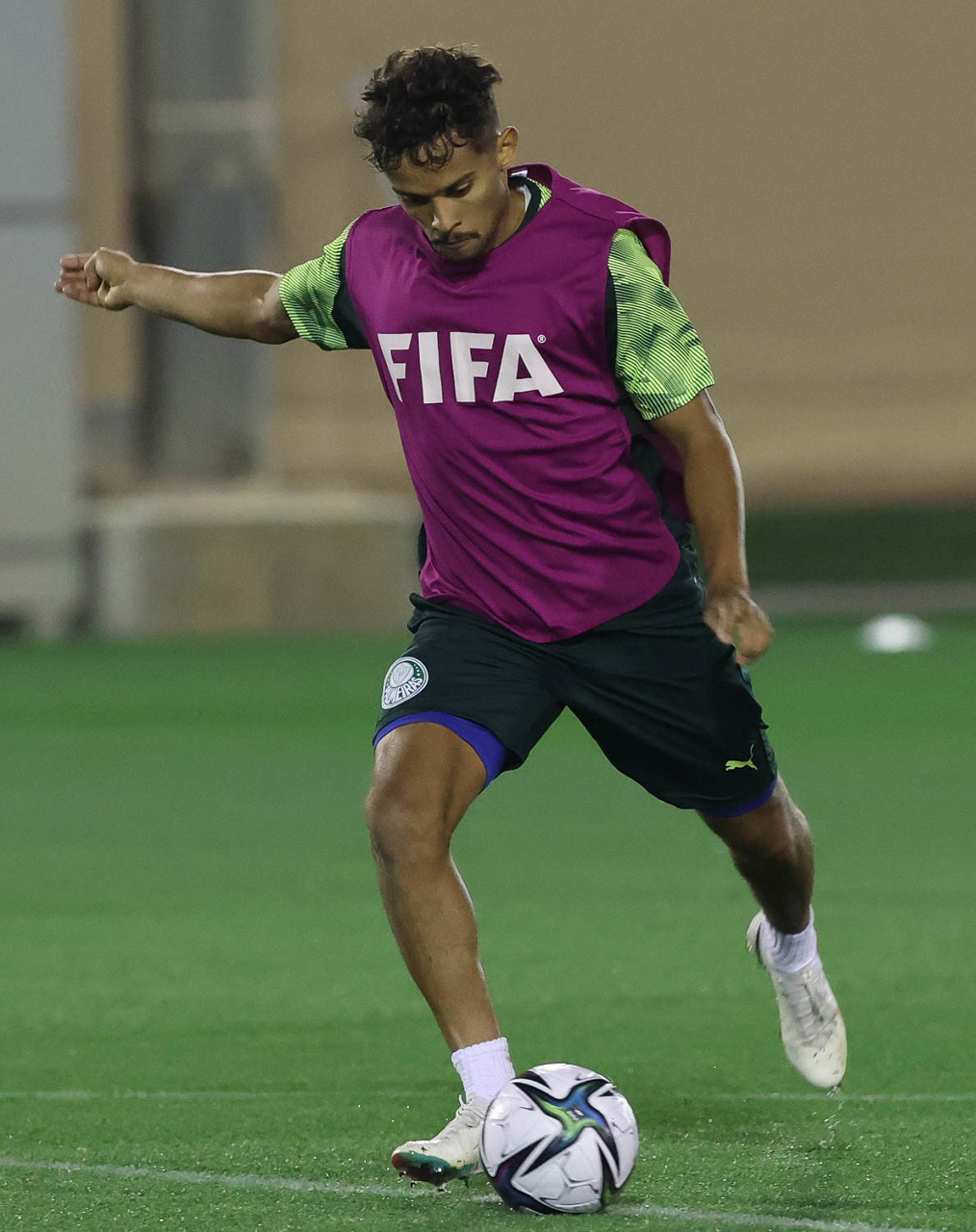 O jogador Gabriel Menino, da SE Palmeiras, durante treinamento, em Doha, no Catar. (Foto: Cesar Greco)