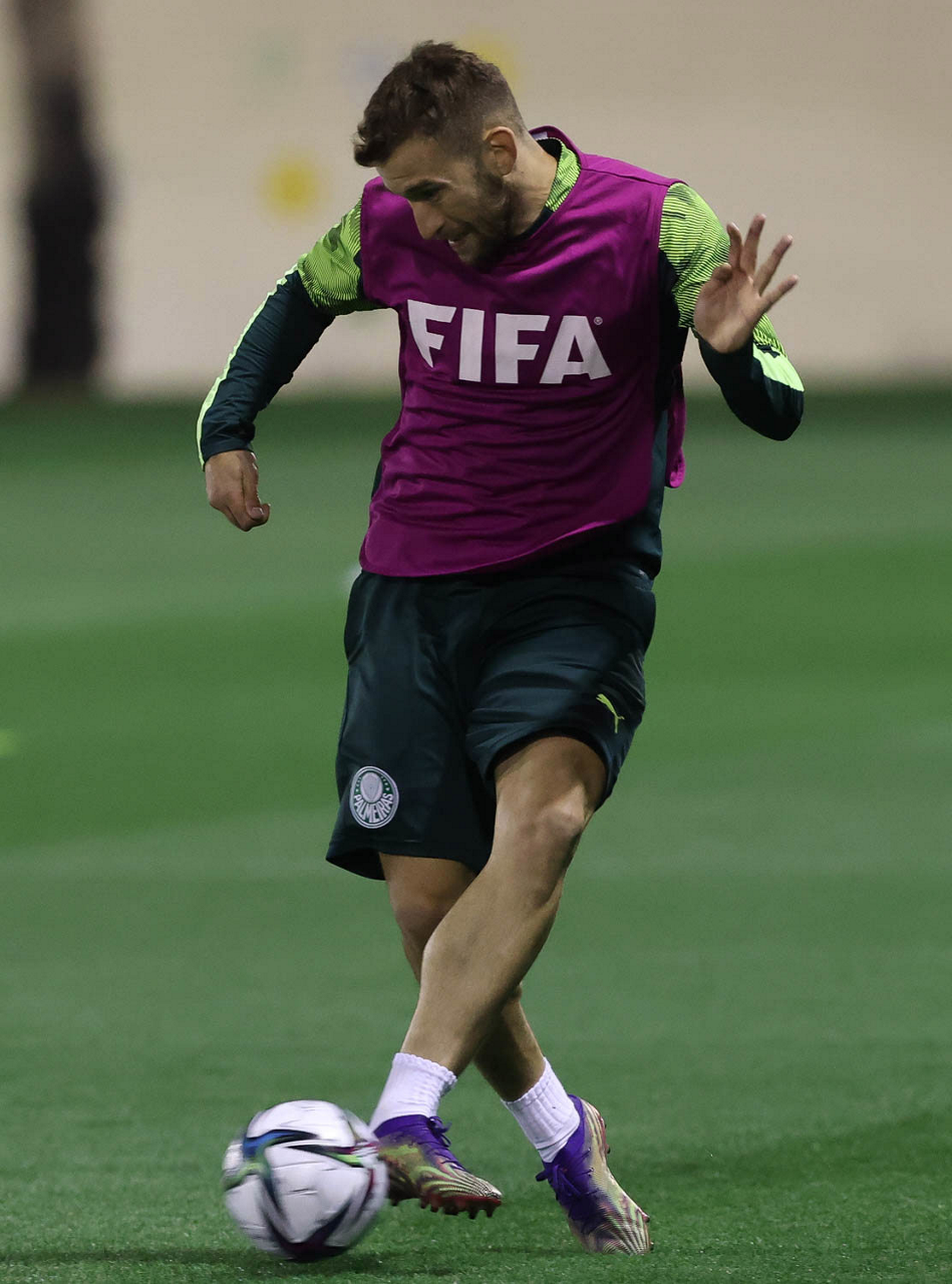O jogador Luan, da SE Palmeiras, durante treinamento, em Doha, no Catar. (Foto: Cesar Greco)
