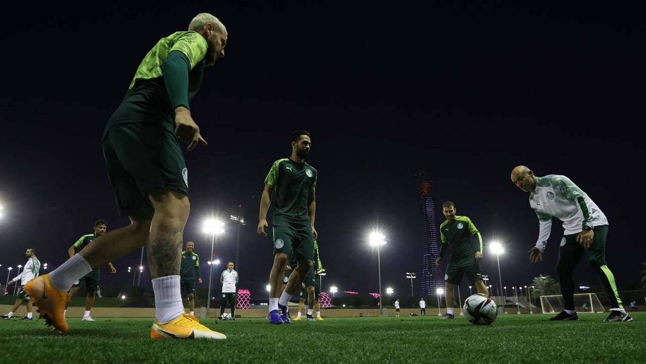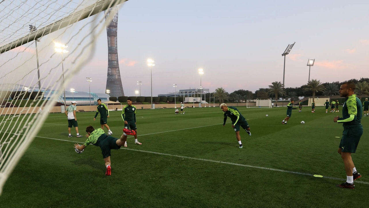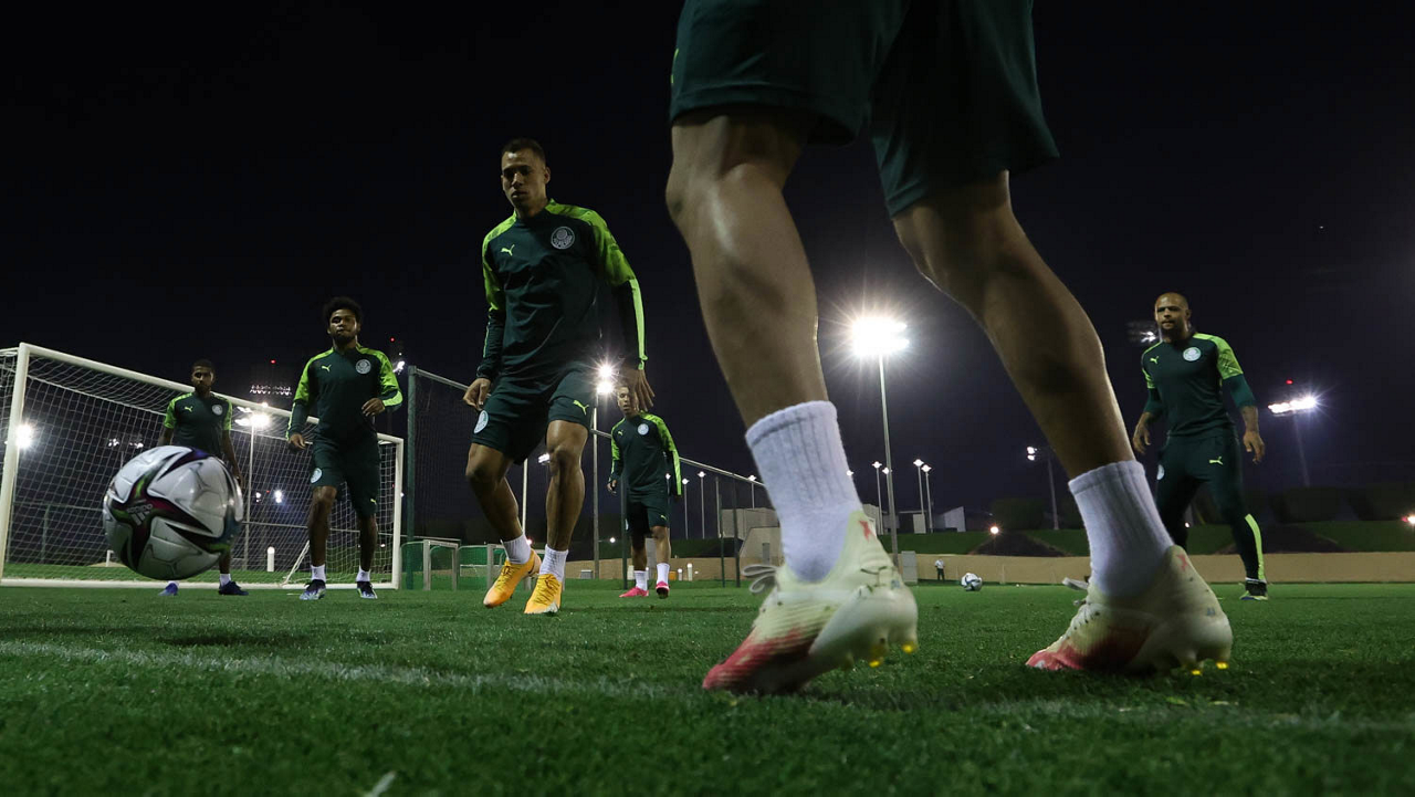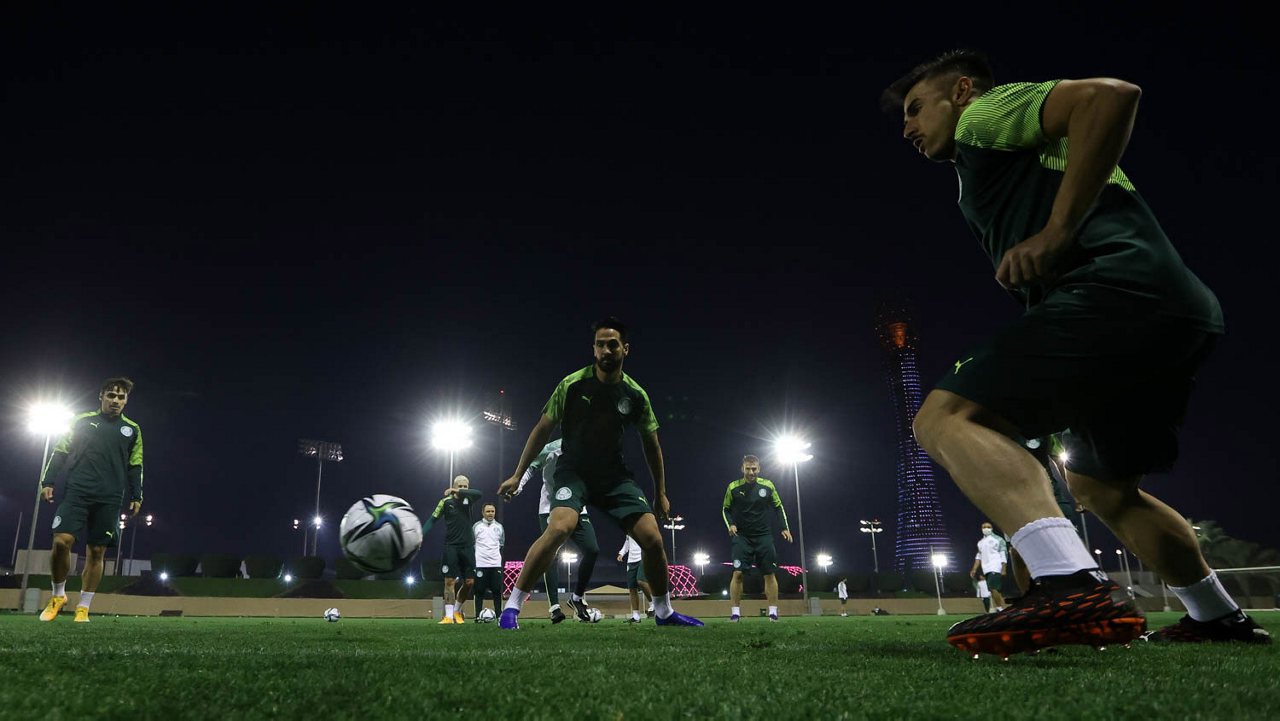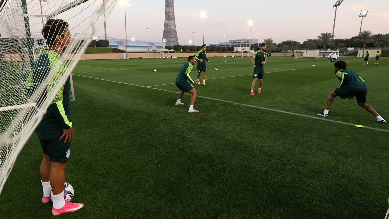 Os jogadores da SE Palmeiras, durante treinamento, em Doha, no Catar. (Foto: Cesar Greco)
