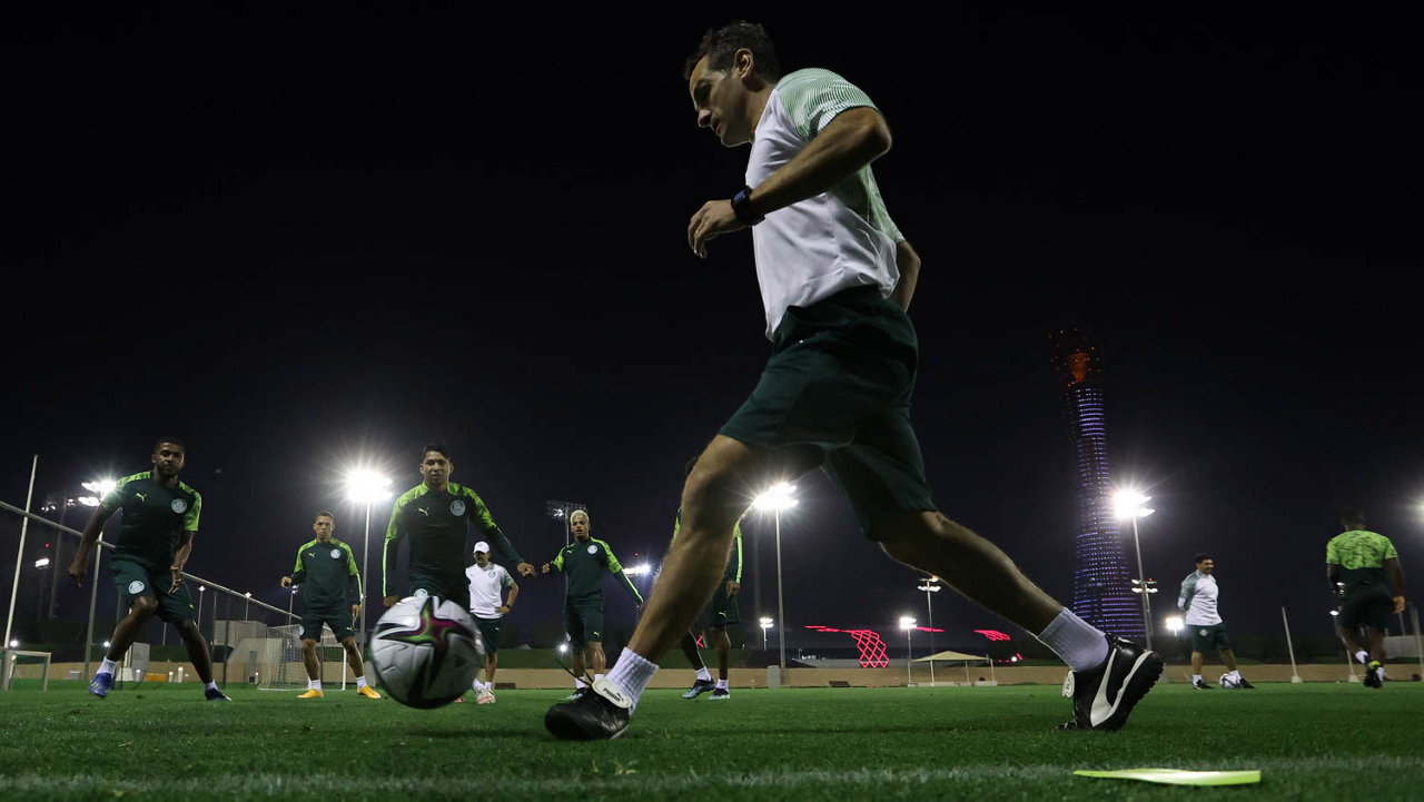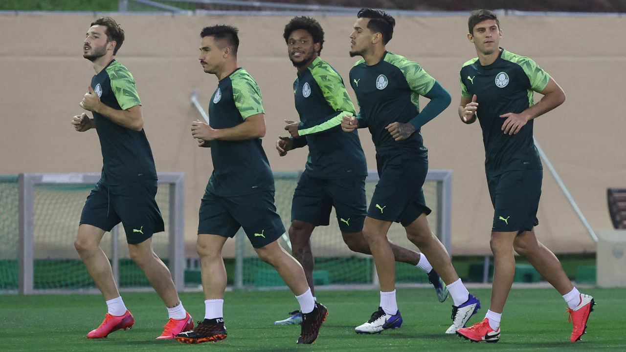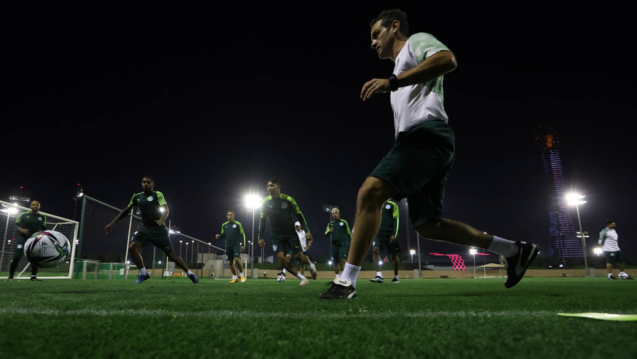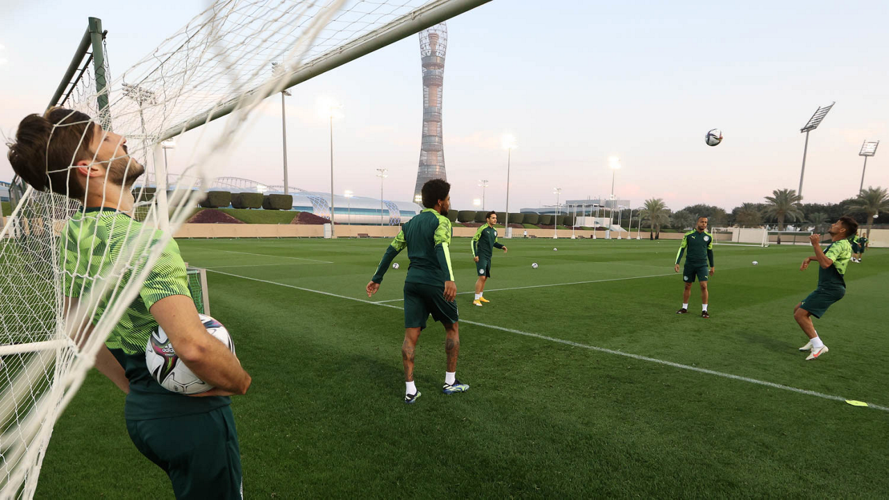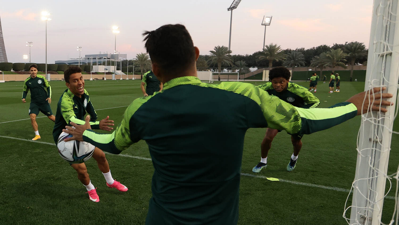 Os jogadores da SE Palmeiras, durante treinamento, em Doha, no Catar. (Foto: Cesar Greco)