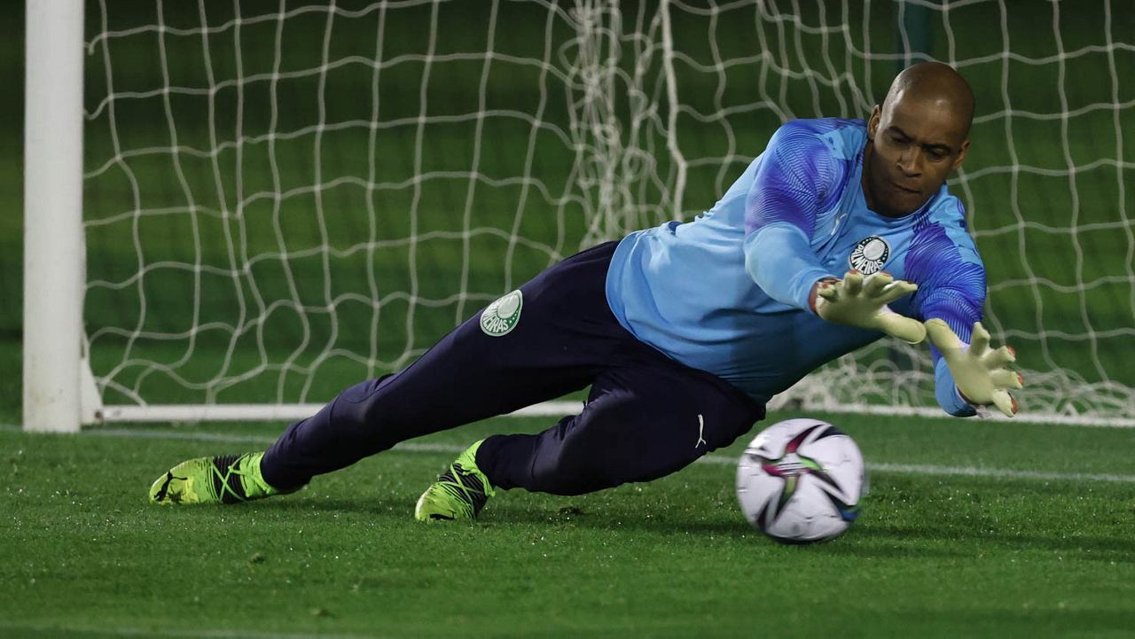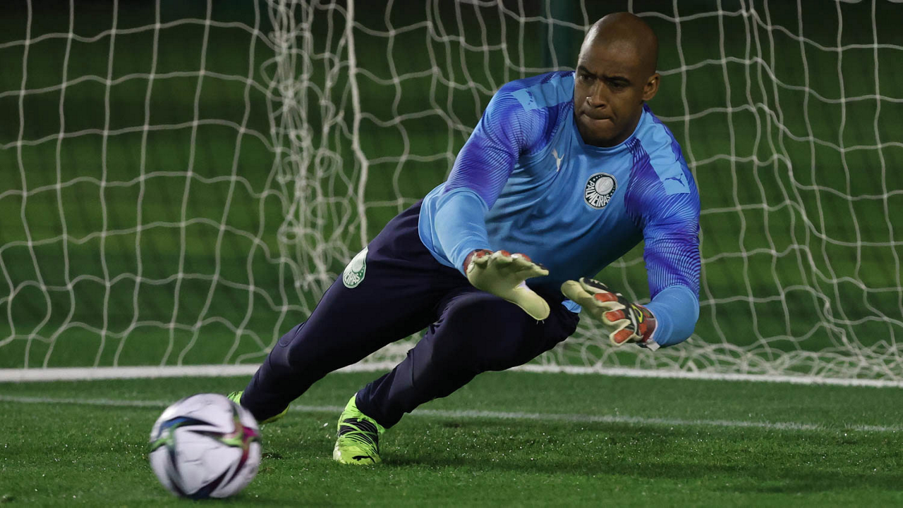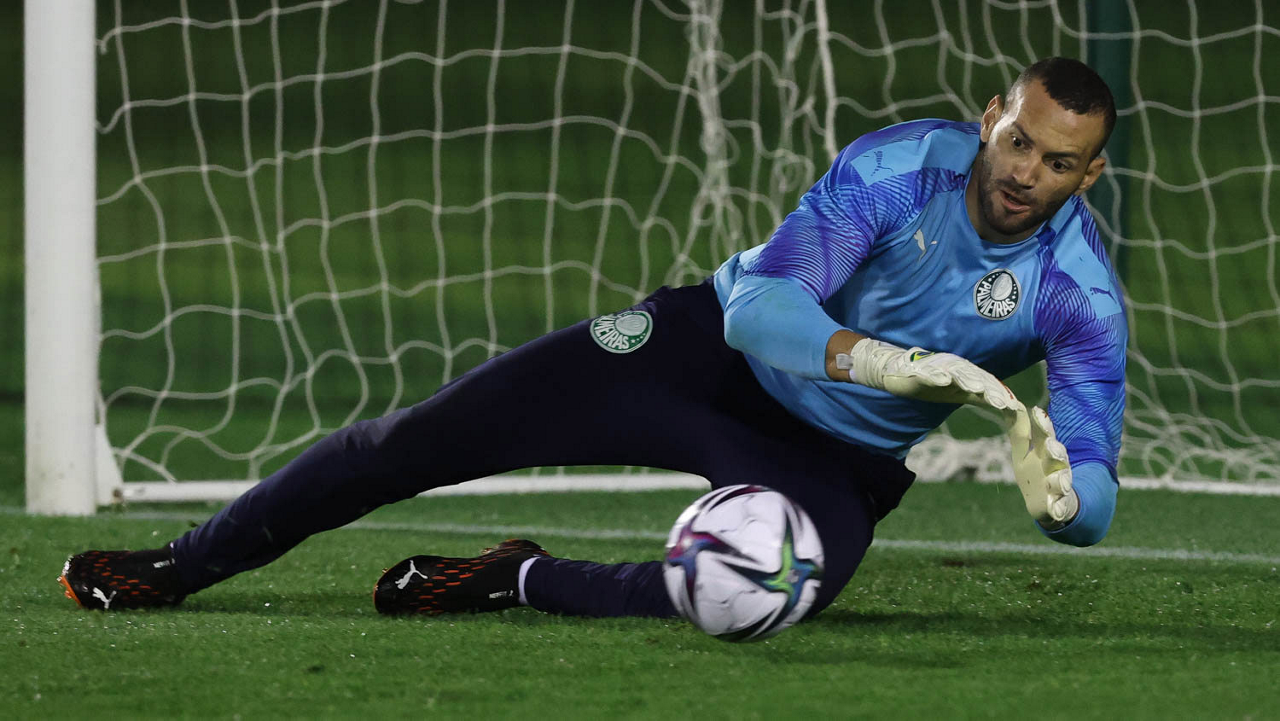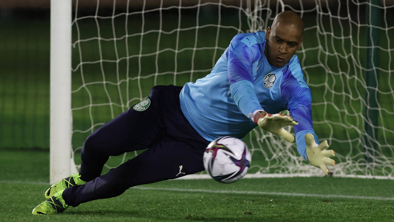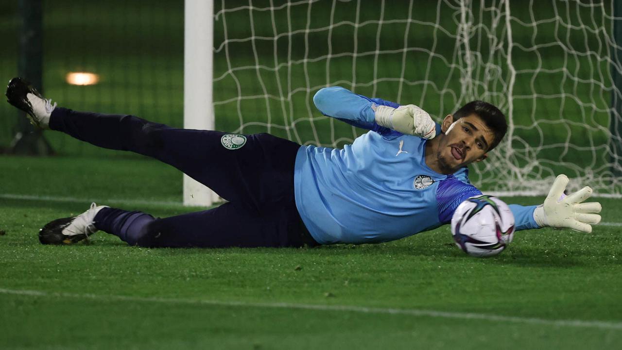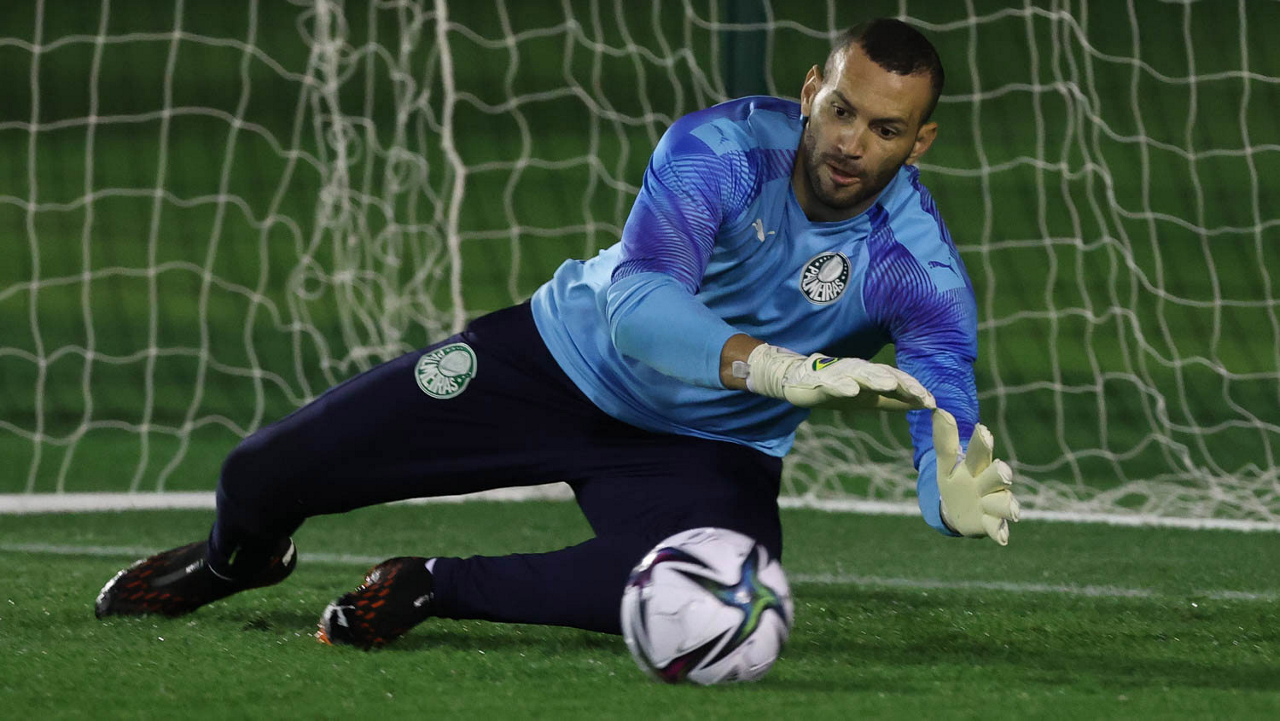 O goleiro Weverton, da SE Palmeiras, durante treinamento, em Doha, no Catar. (Foto: Cesar Greco)