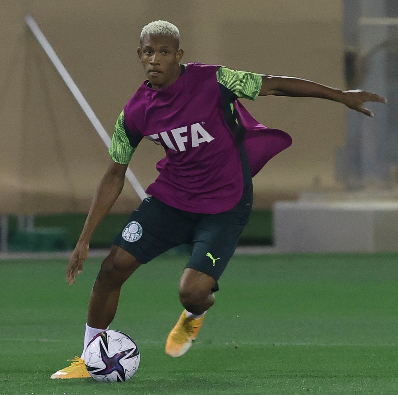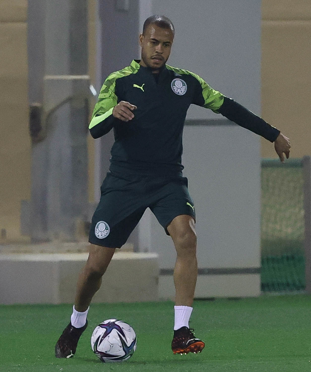 O jogador Mayke, da SE Palmeiras, durante treinamento, em Doha, no Catar. (Foto: Cesar Greco)