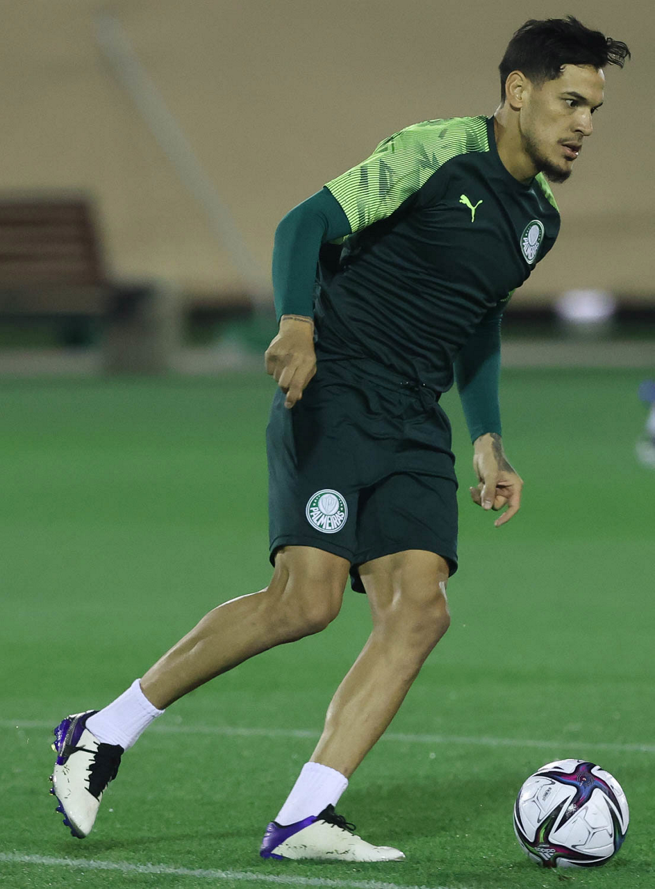 O jogador Gustavo Scarpa, da SE Palmeiras, durante treinamento, em Doha, no Catar. (Foto: Cesar Greco)