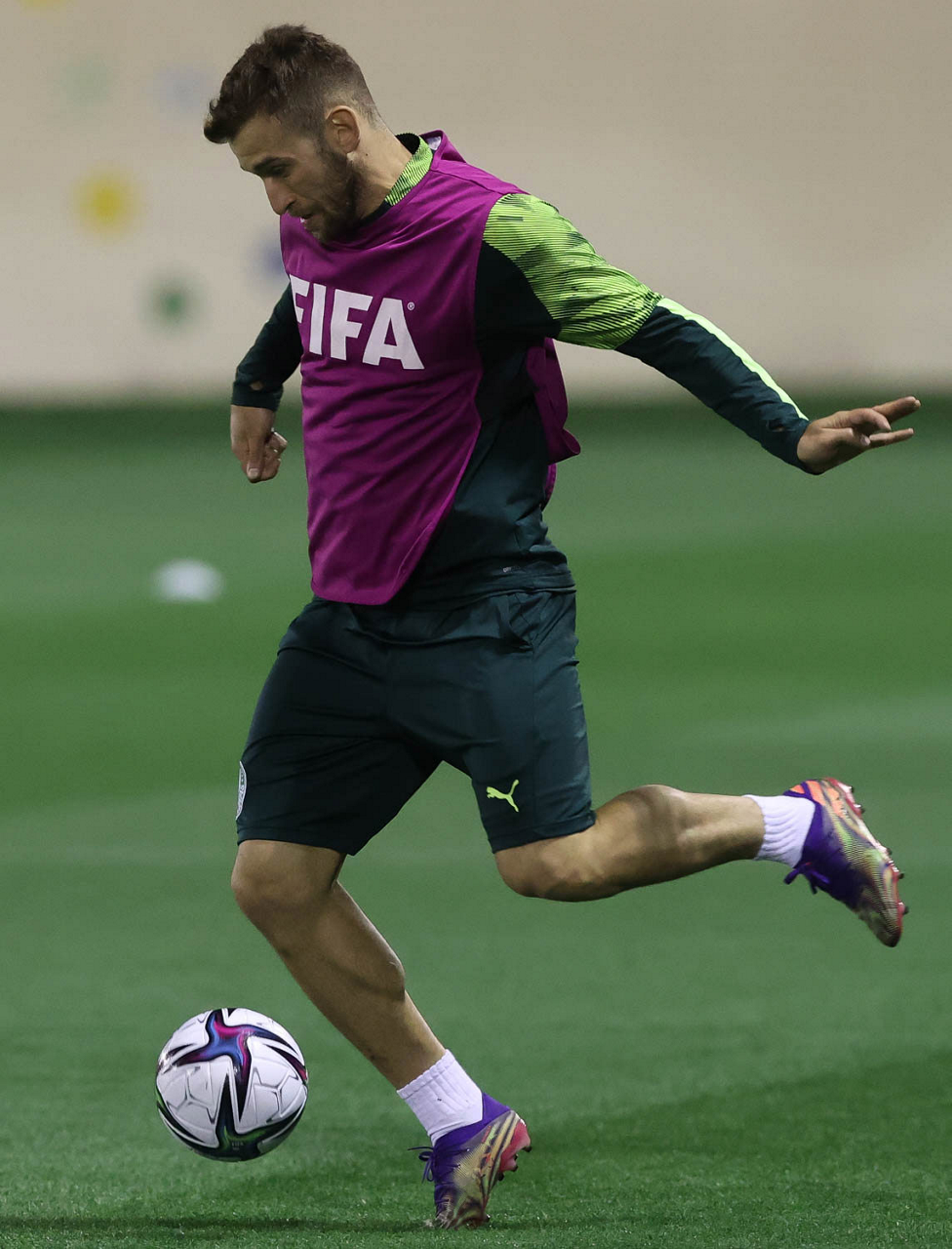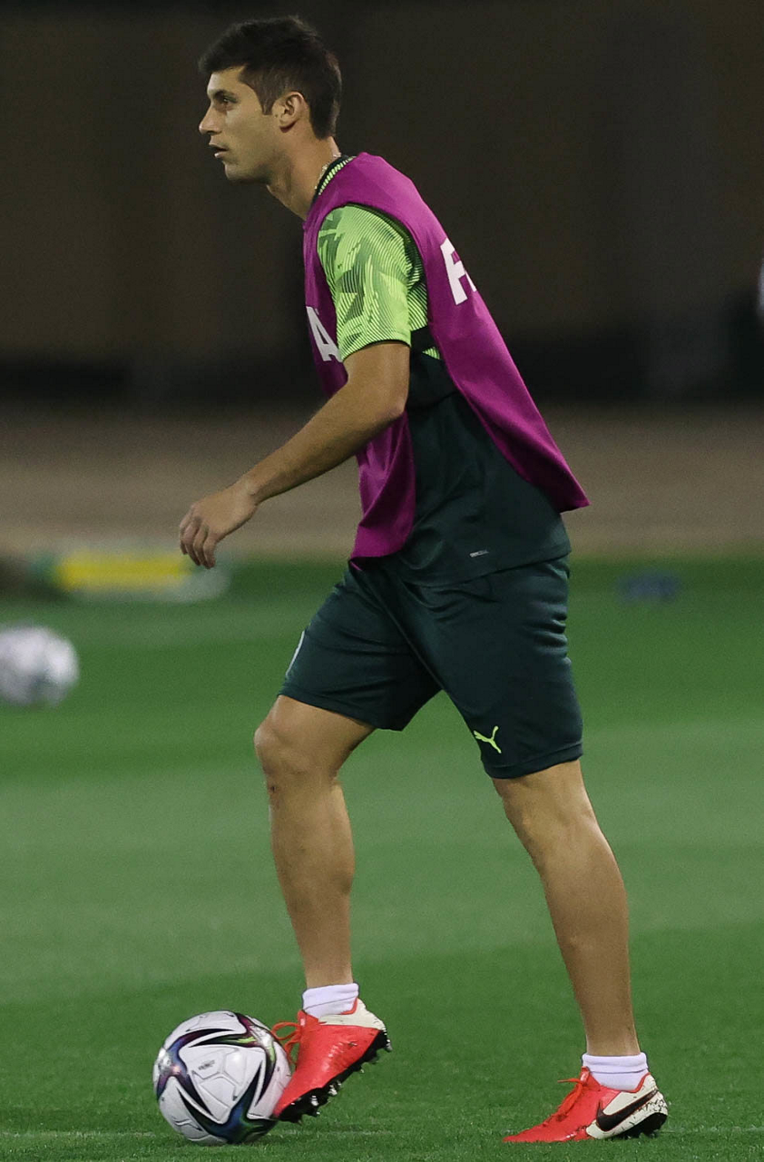 O jogador Benjamín Kuscevic, da SE Palmeiras, durante treinamento, em Doha, no Catar. (Foto: Cesar Greco)
