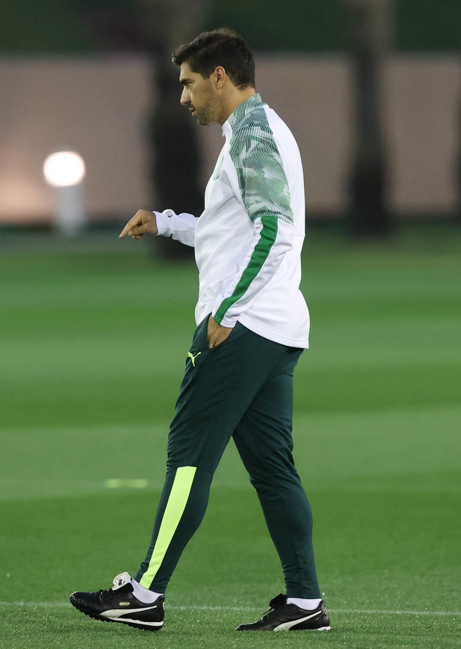 O técnico Abel Ferreira, da SE Palmeiras, durante treinamento, em Doha, no Catar. (Foto: Cesar Greco)