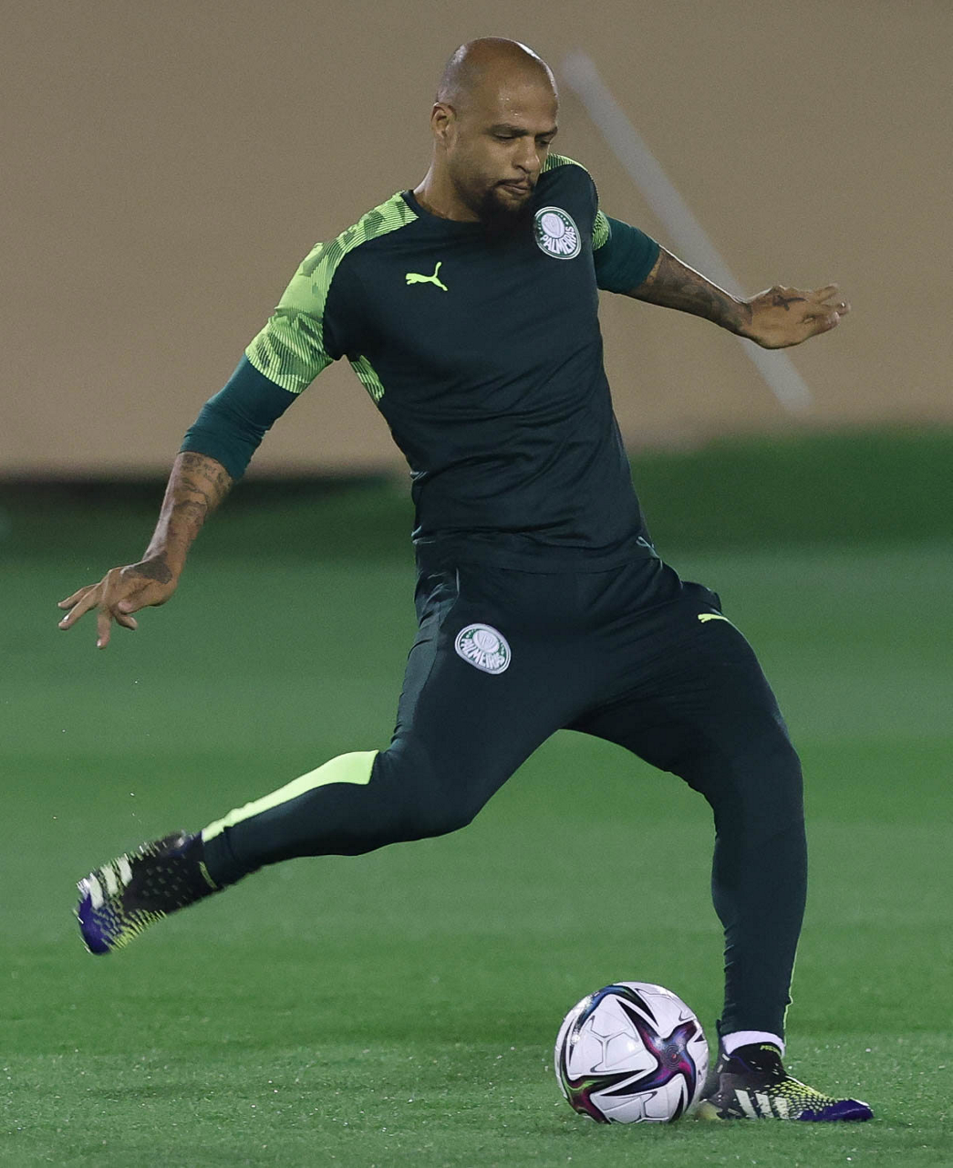 O jogador Felipe Melo, da SE Palmeiras, durante treinamento, em Doha, no Catar. (Foto: Cesar Greco)