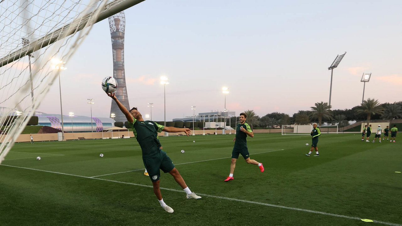 O jogador Renan, da SE Palmeiras, durante treinamento, em Doha, no Catar. (Foto: Cesar Greco)