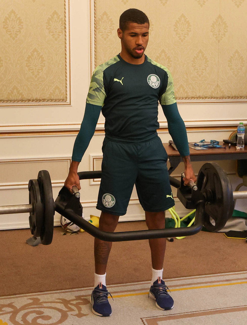 O jogador Emerson Santos, da SE Palmeiras, durante treinamento, em Doha, no Catar. (Foto: Cesar Greco)
