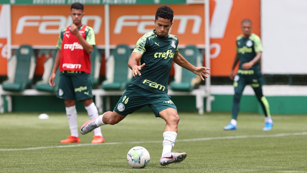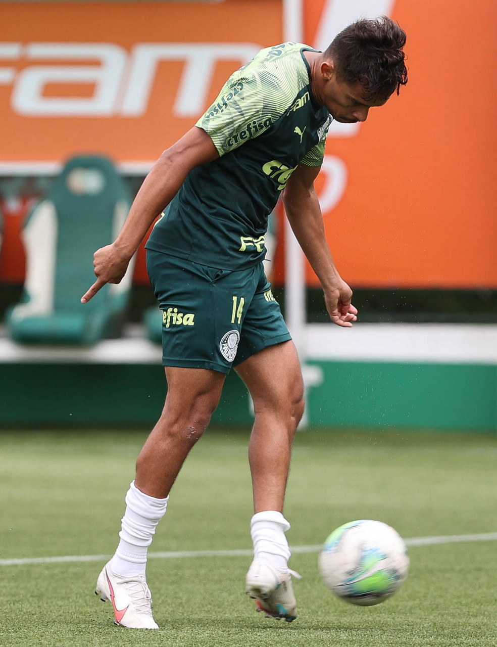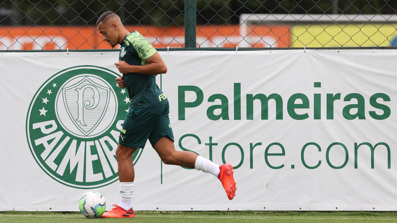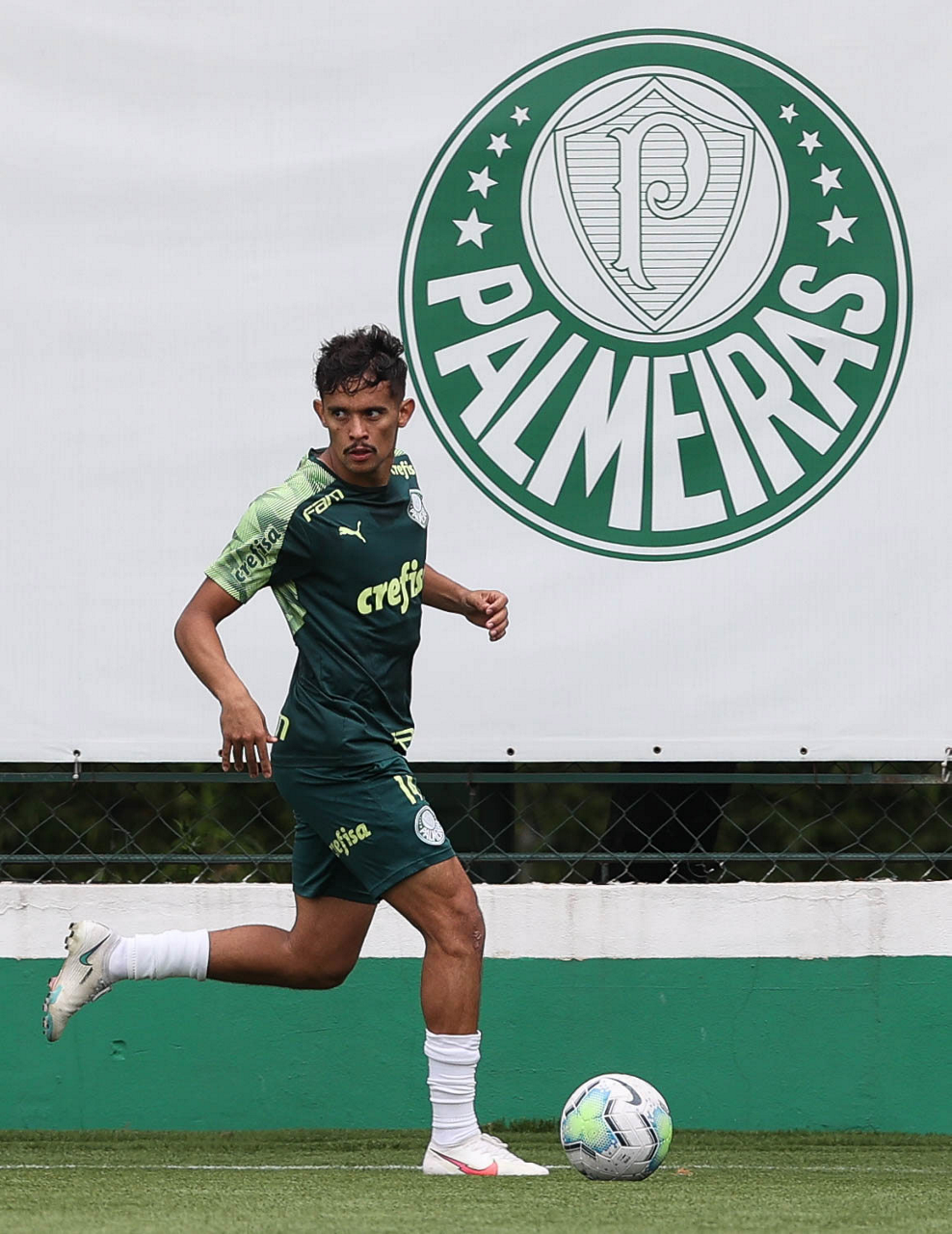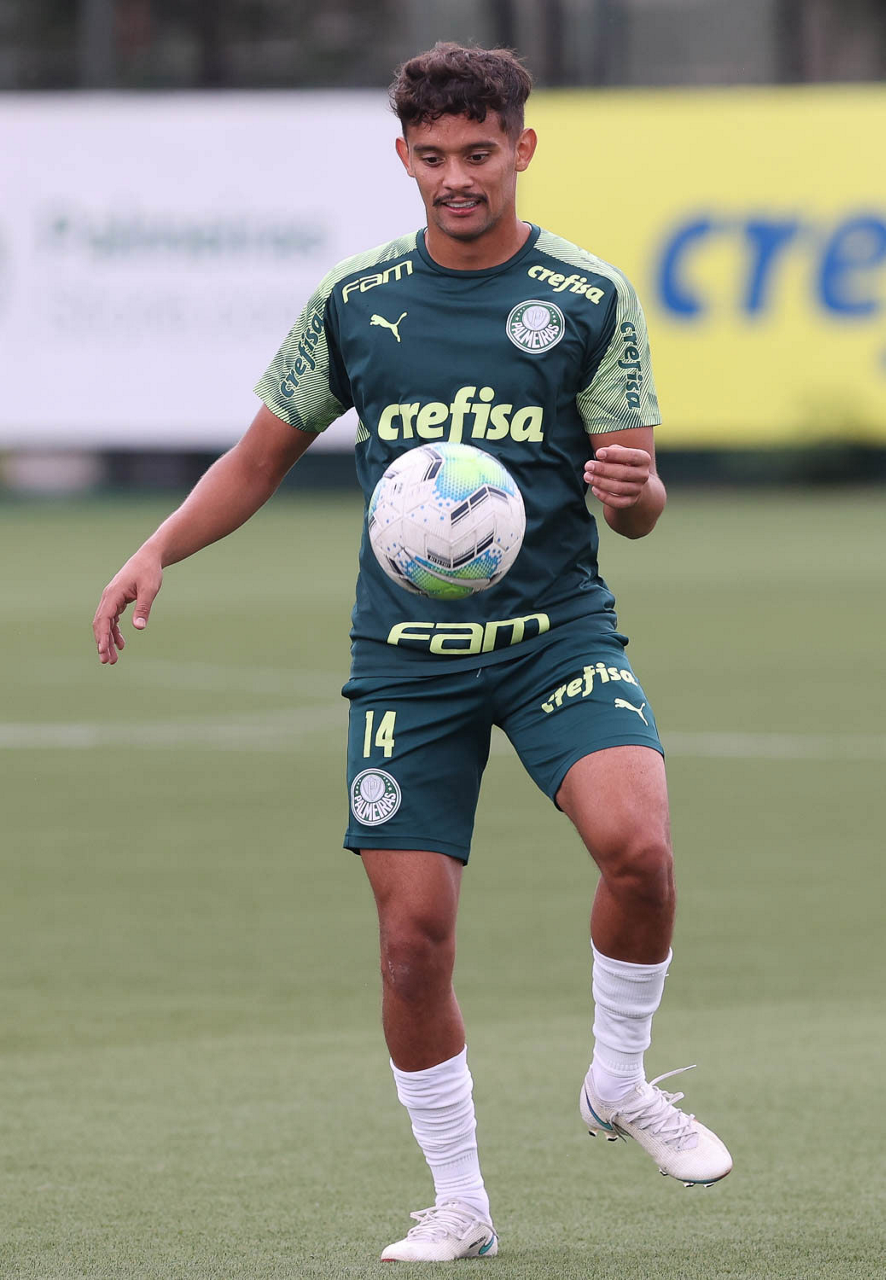O jogador Gabriel Menino, da SE Palmeiras, durante treinamento, na Academia de Futebol. (Foto: Cesar Greco)