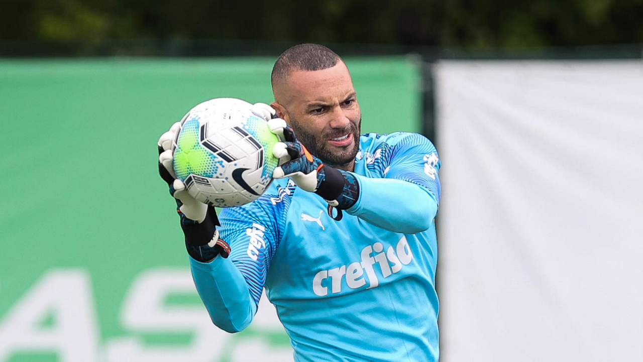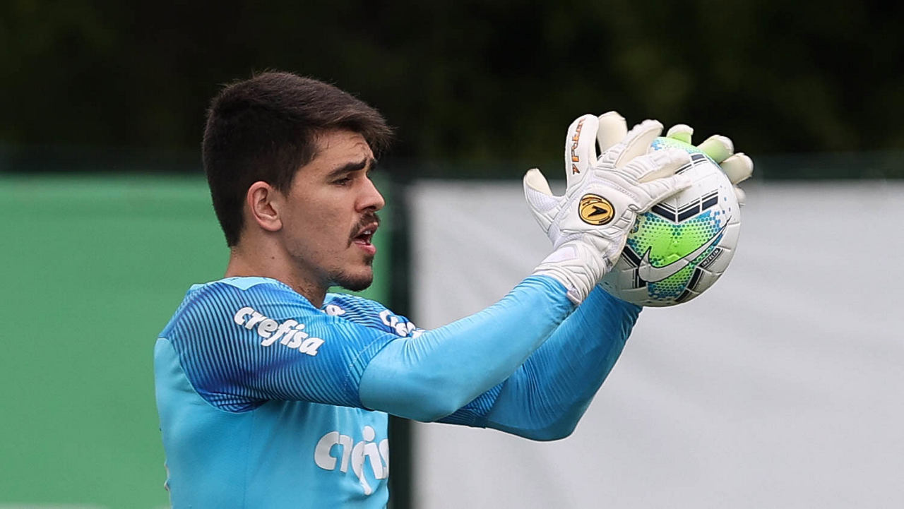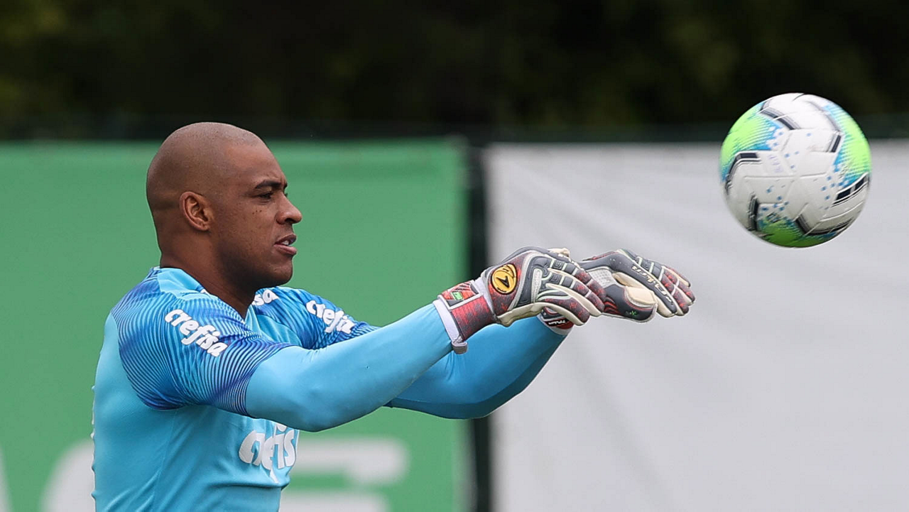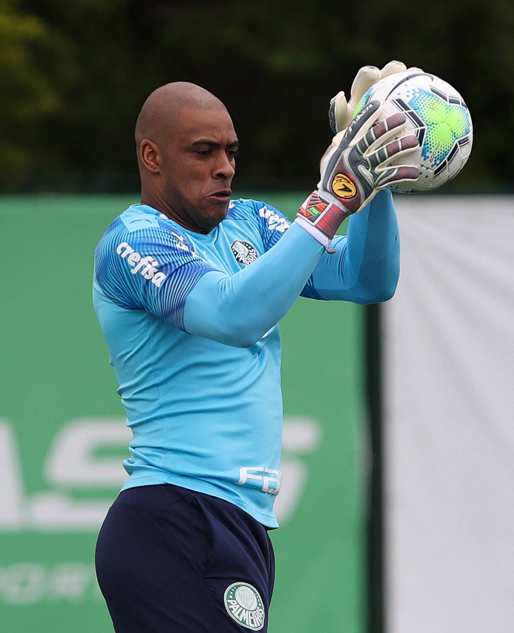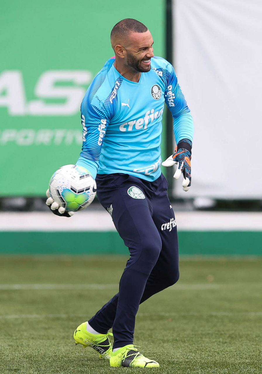 O goleiro Weverton, da SE Palmeiras, durante treinamento, na Academia de Futebol. (Foto: Cesar Greco)