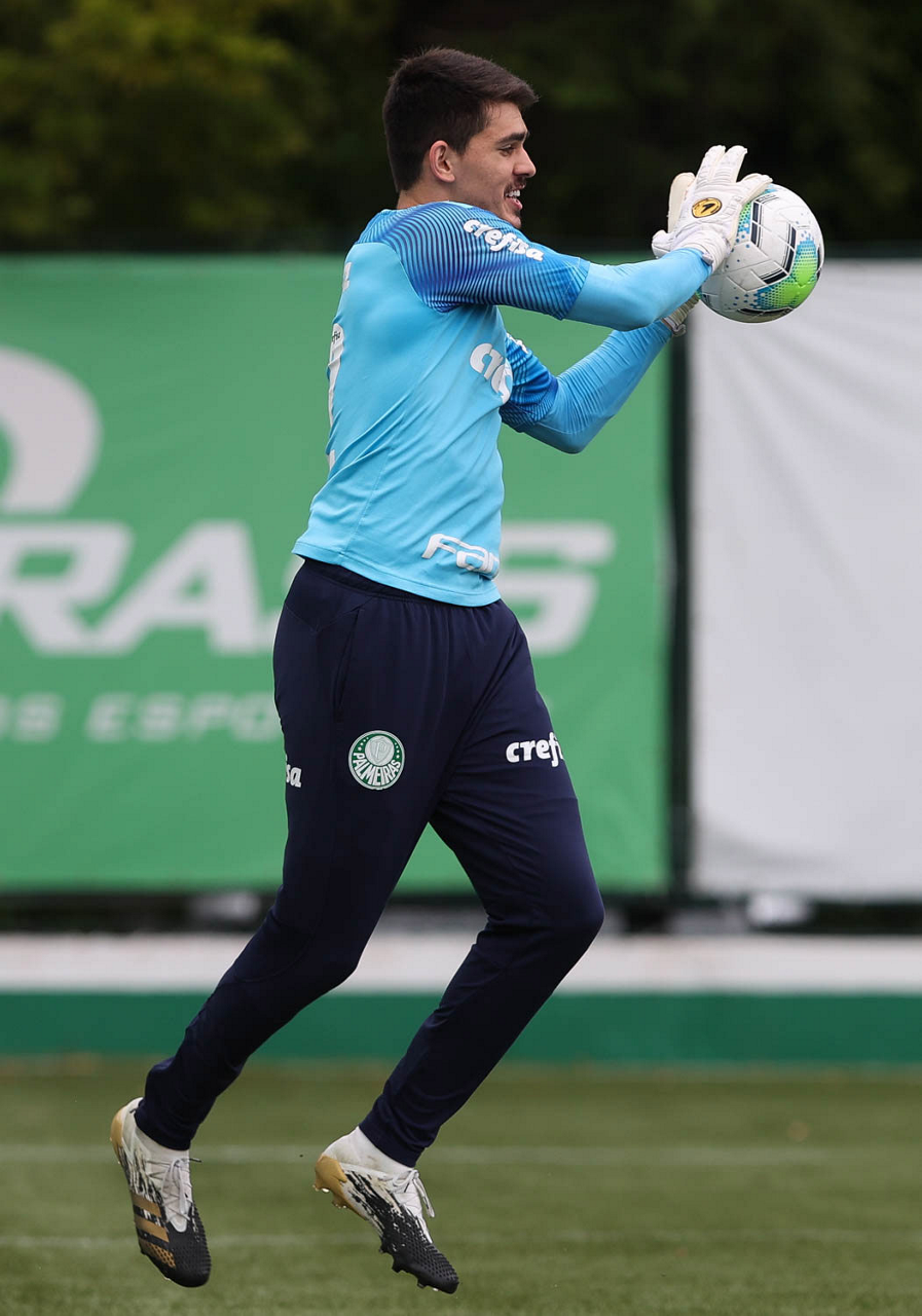 O goleiro Mateus, da SE Palmeiras, durante treinamento, na Academia de Futebol. (Foto: Cesar Greco)