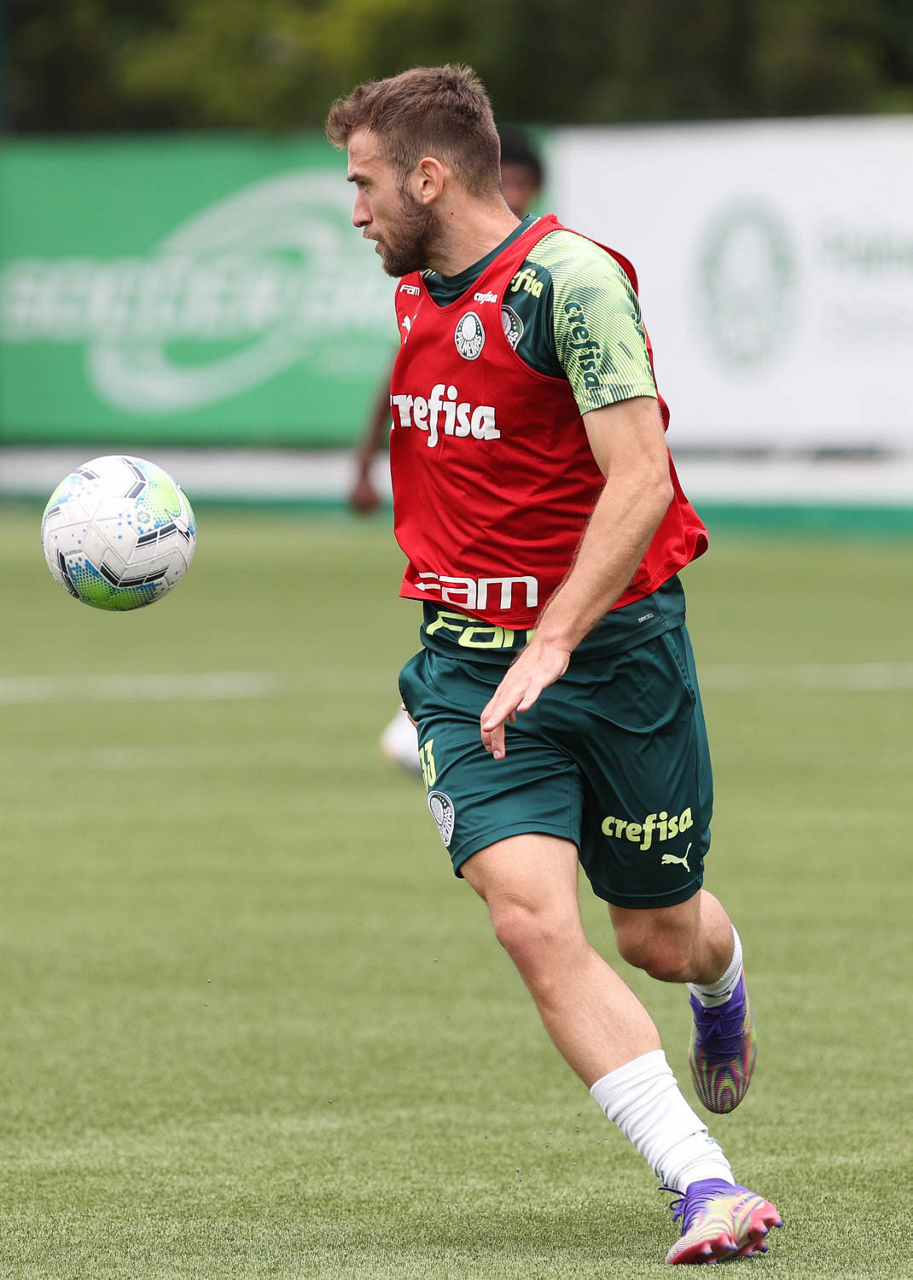 O jogador Benjamín Kuscevic, da SE Palmeiras, durante treinamento, na Academia de Futebol. (Foto: Cesar Greco)