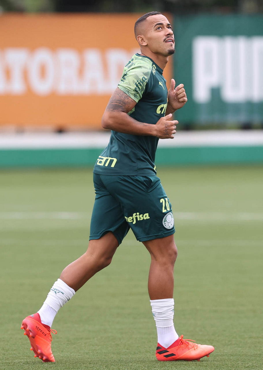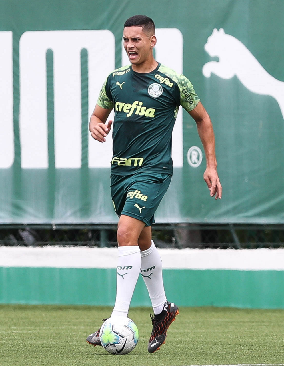O jogador Raphael Veiga, da SE Palmeiras, durante treinamento, na Academia de Futebol. (Foto: Cesar Greco)