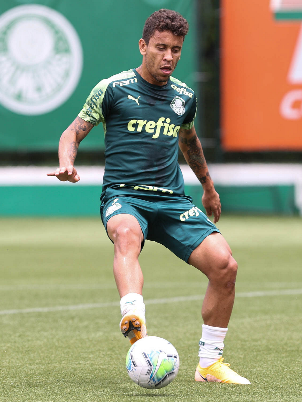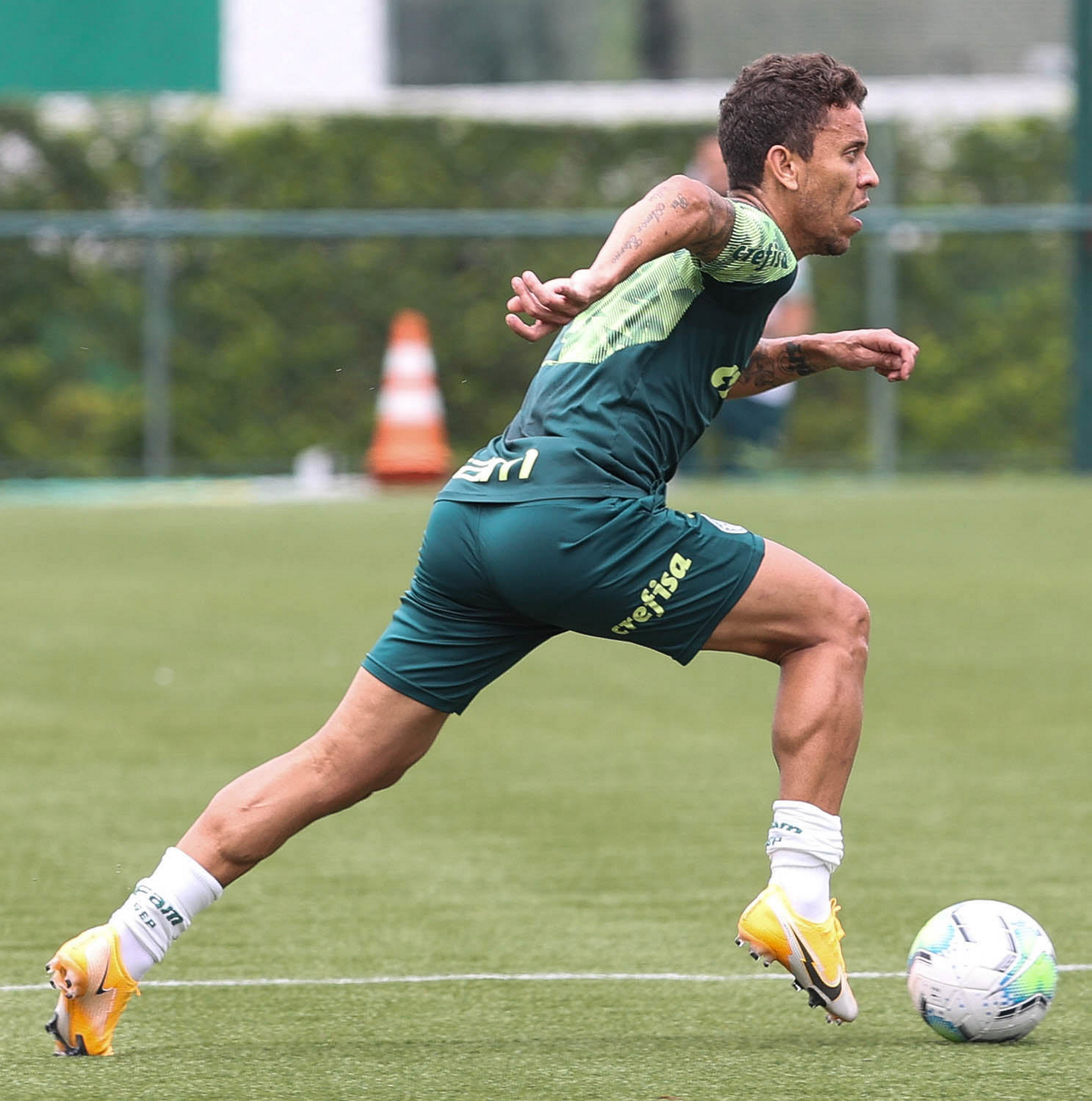 O jogador Marcos Rocha, da SE Palmeiras, durante treinamento, na Academia de Futebol. (Foto: Cesar Greco)