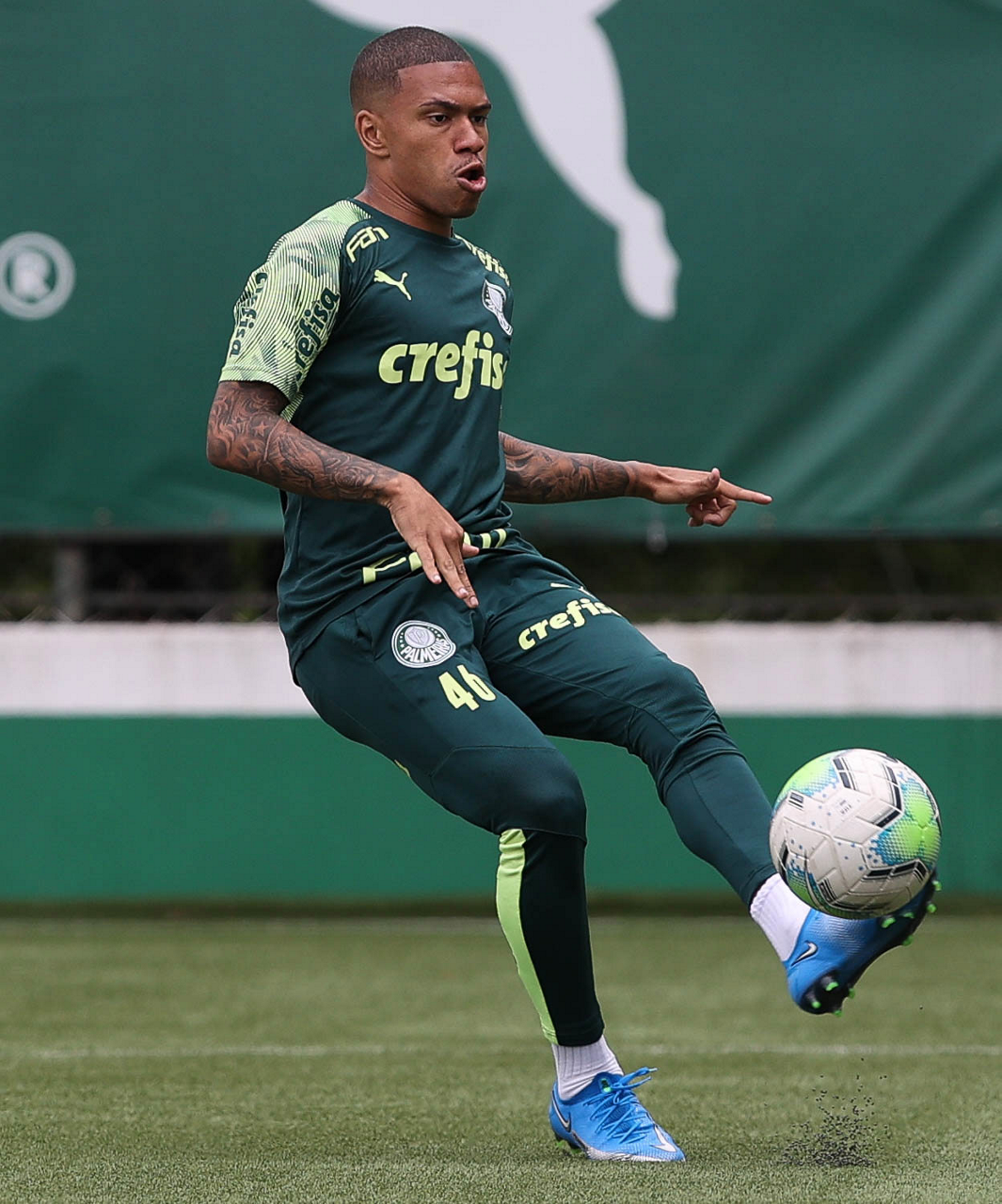 O jogador Emerson Santos, da SE Palmeiras, durante treinamento, na Academia de Futebol. (Foto: Cesar Greco)
