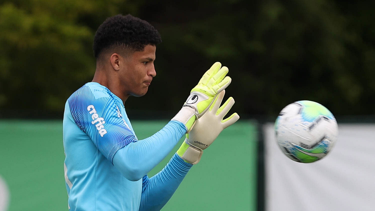 O goleiro Vinicius, da SE Palmeiras, durante treinamento, na Academia de Futebol. (Foto: Cesar Greco)