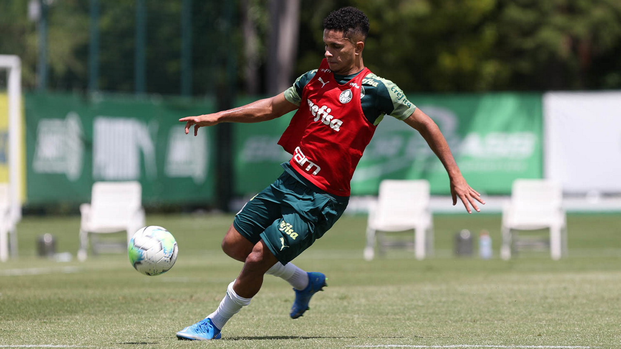 O jogador Gabriel Silva, da SE Palmeiras, durante treinamento, na Academia de Futebol. (Foto: Cesar Greco)