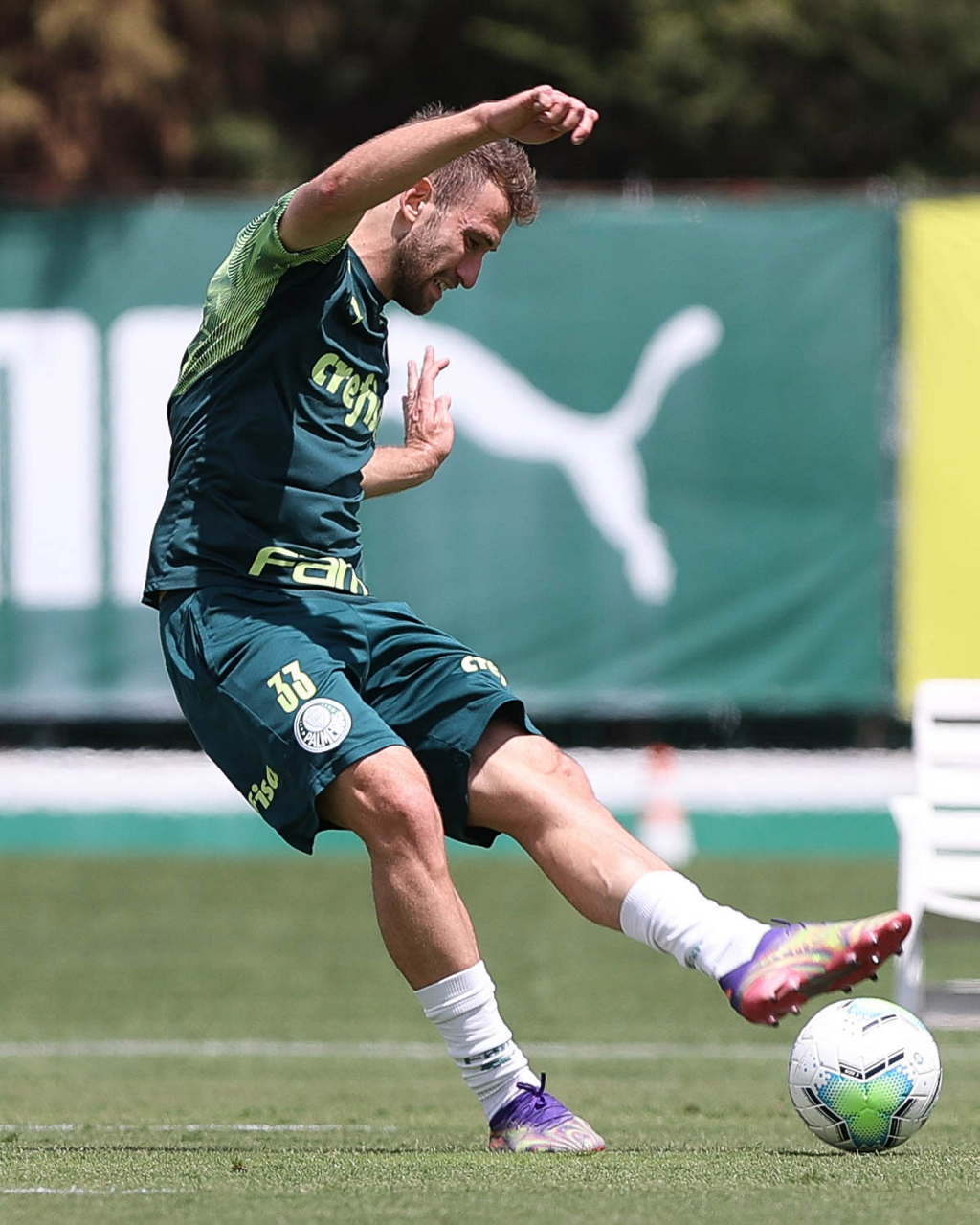 O jogador Benjamín Kuscevic, da SE Palmeiras, durante treinamento, na Academia de Futebol. (Foto: Cesar Greco)