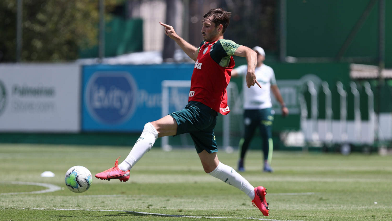 O jogador Matías Viña, da SE Palmeiras, durante treinamento, na Academia de Futebol. (Foto: Cesar Greco)