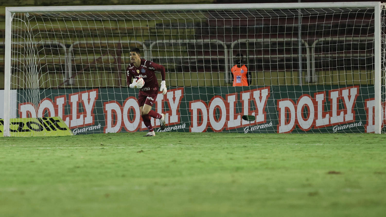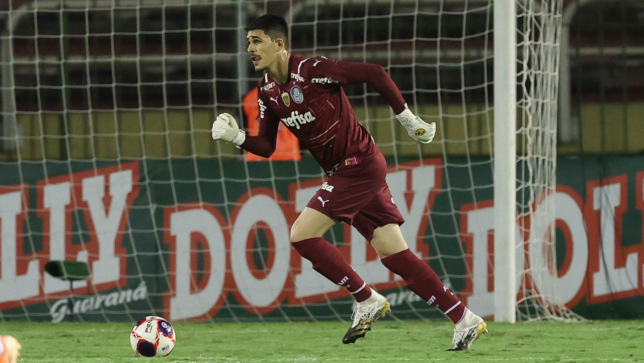 O goleiro Vinicius, da SE Palmeiras, em jogo contra a equipe do SC São Bento, durante partida válida pela terceira rodada, do Campeonato Paulista, Série A1, no Estádio Raulino de Oliveira. (Foto: Cesar Greco)