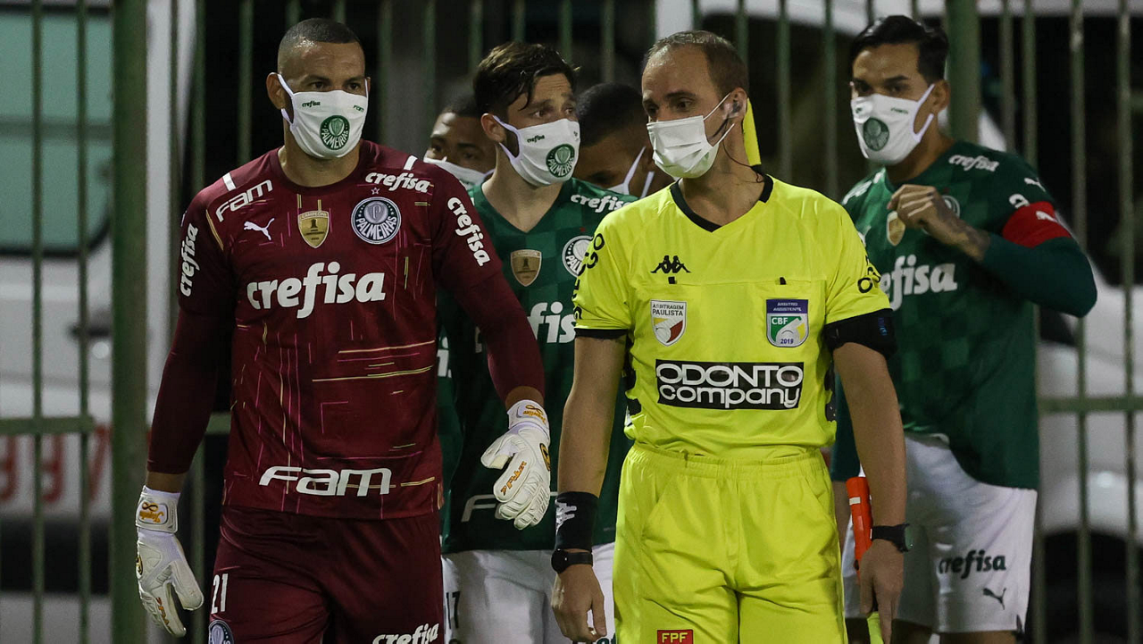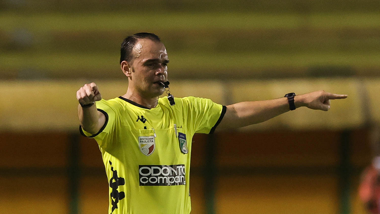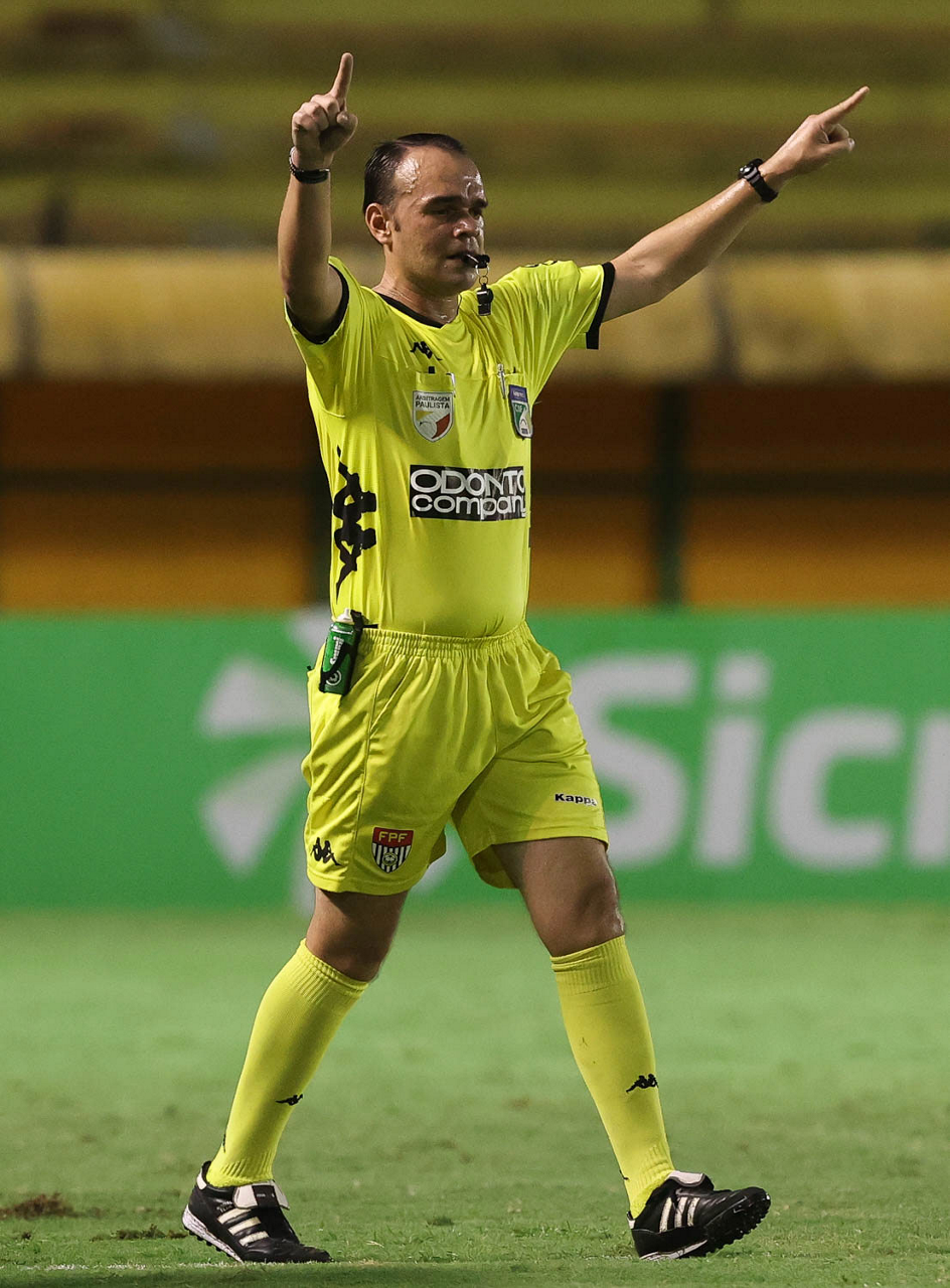 O árbitro Salim Fende Chavez, do jogo entre as equipes da SE Palmeiras e SC São Bento, durante partida válida pela terceira rodada, do Campeonato Paulista, Série A1, no Estádio Raulino de Oliveira. (Foto: Cesar Greco)