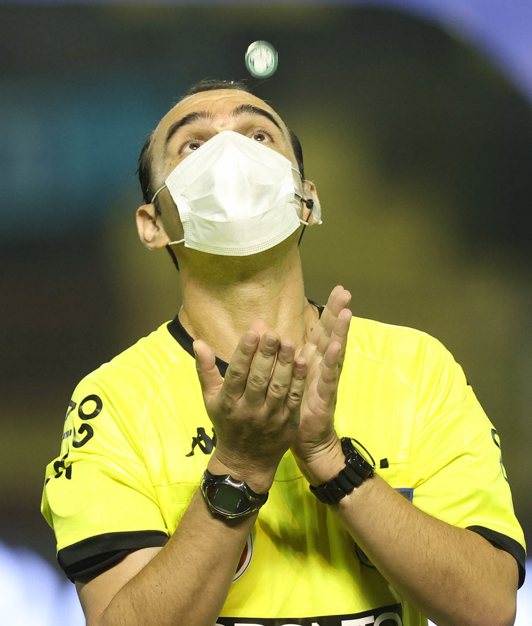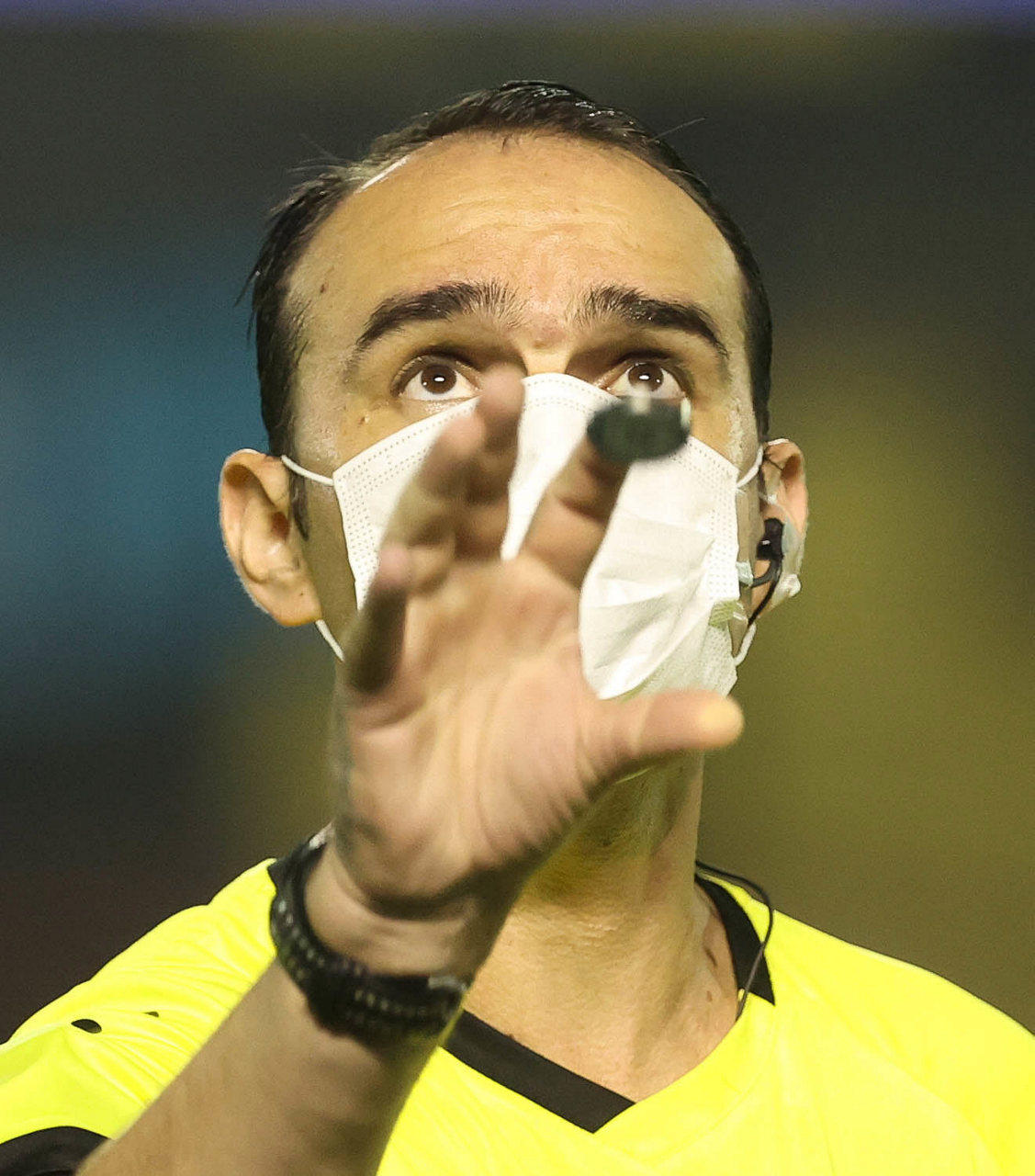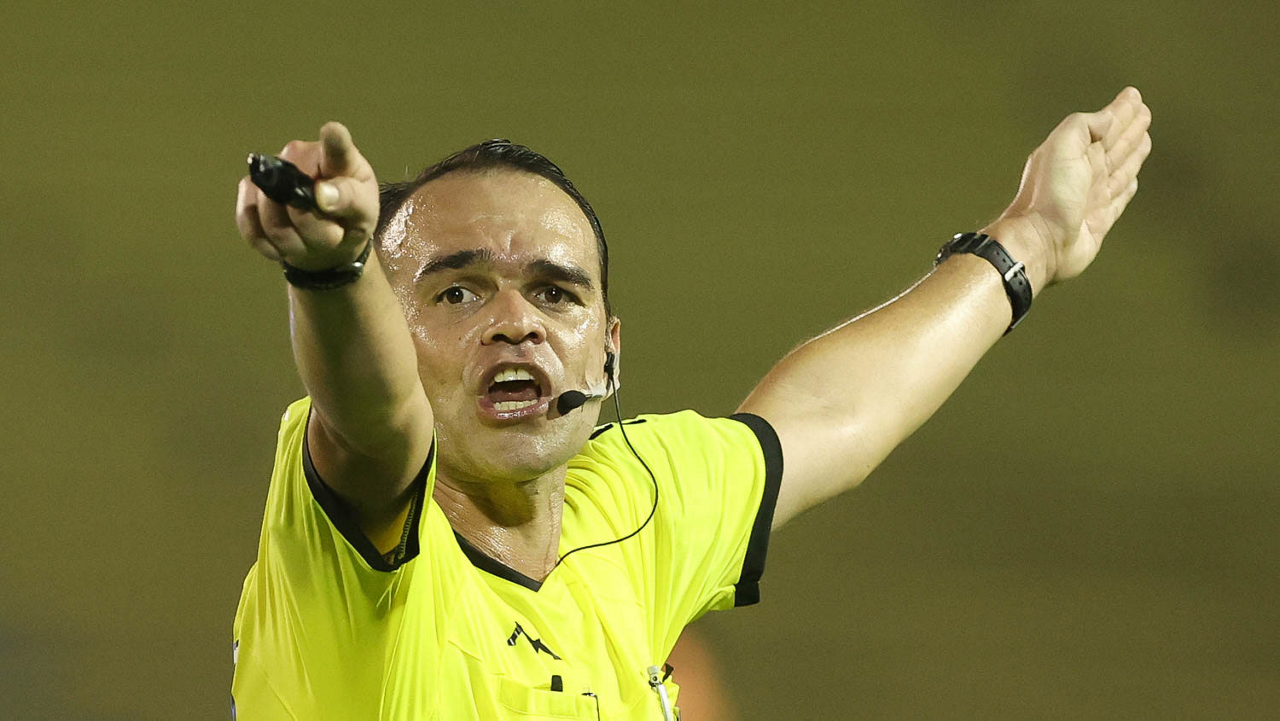 O árbitro Salim Fende Chavez, do jogo entre as equipes da SE Palmeiras e SC São Bento, durante partida válida pela terceira rodada, do Campeonato Paulista, Série A1, no Estádio Raulino de Oliveira. (Foto: Cesar Greco)