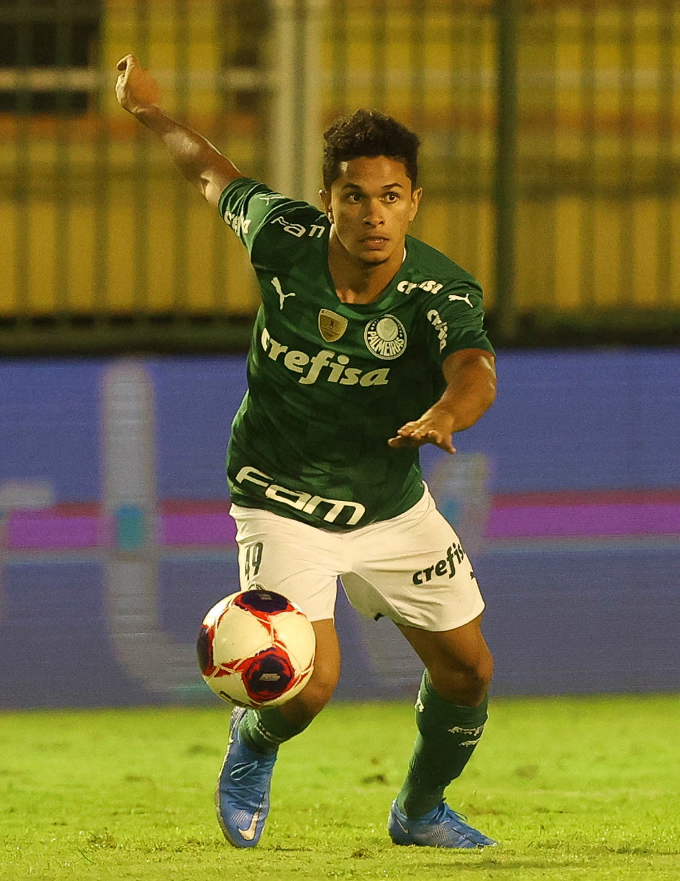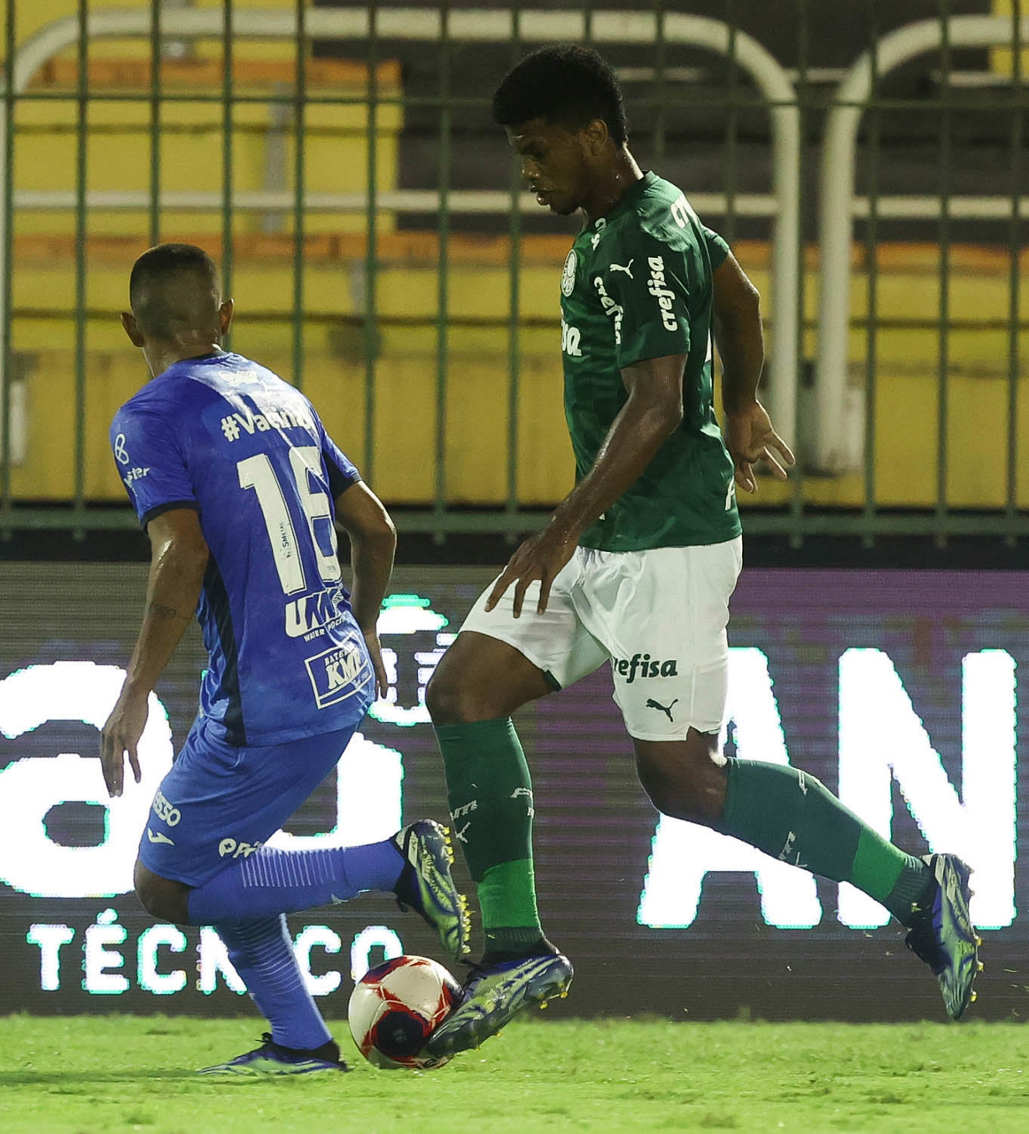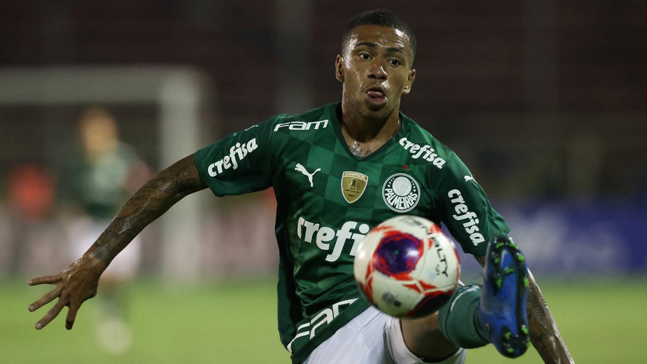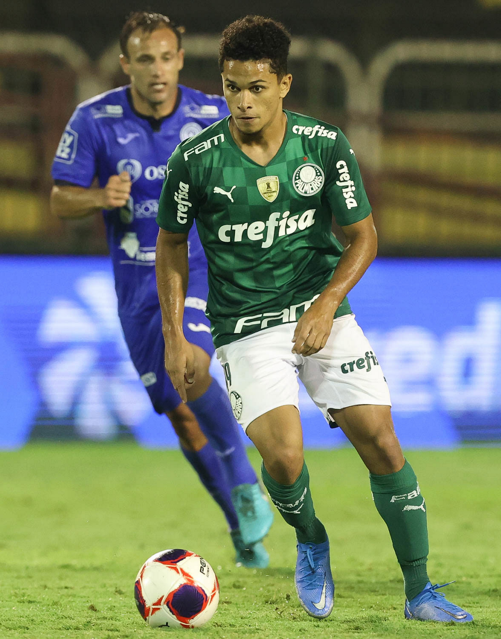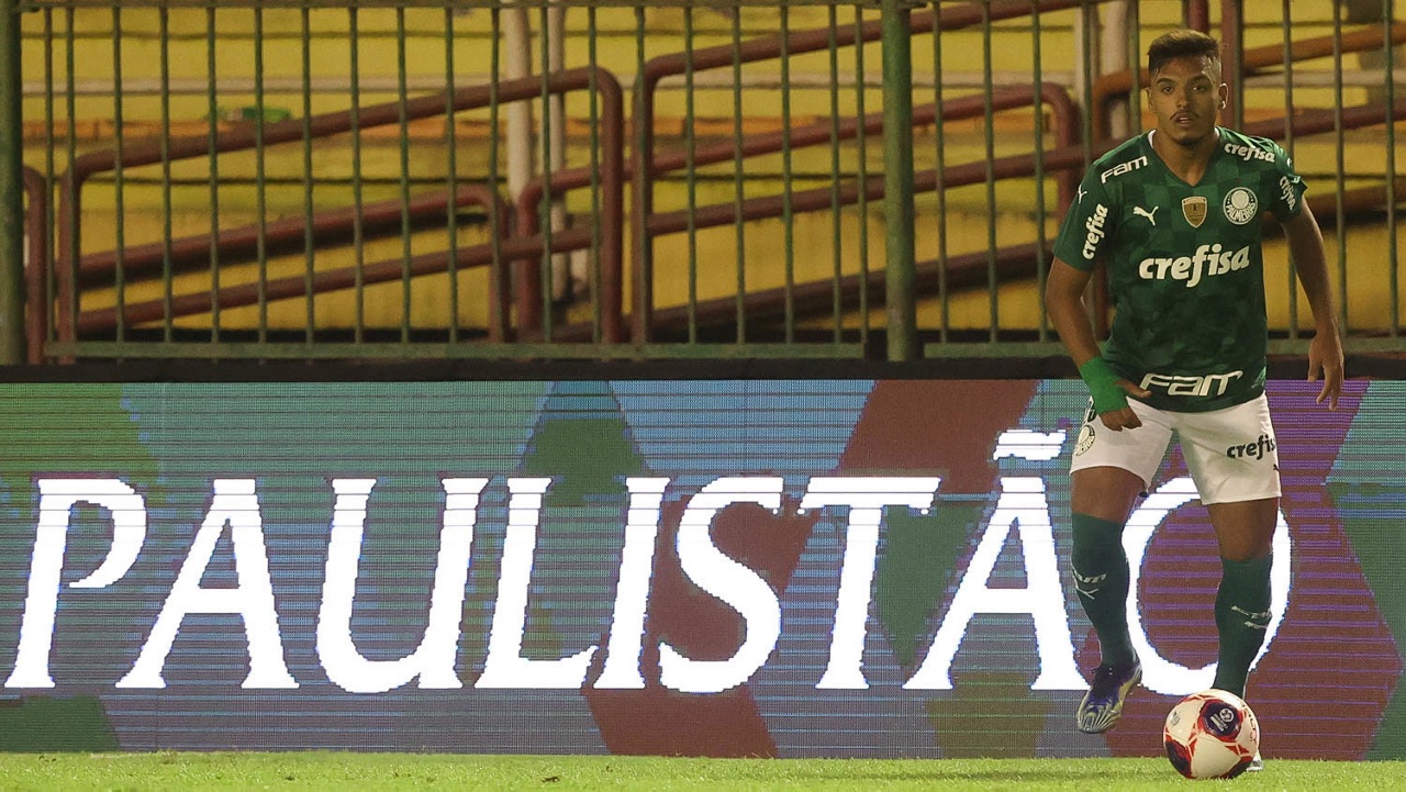O jogador Gabriel Menino, da SE Palmeiras, em jogo contra a equipe do SC São Bento, durante partida válida pela terceira rodada, do Campeonato Paulista, Série A1, no Estádio Raulino de Oliveira. (Foto: Cesar Greco)