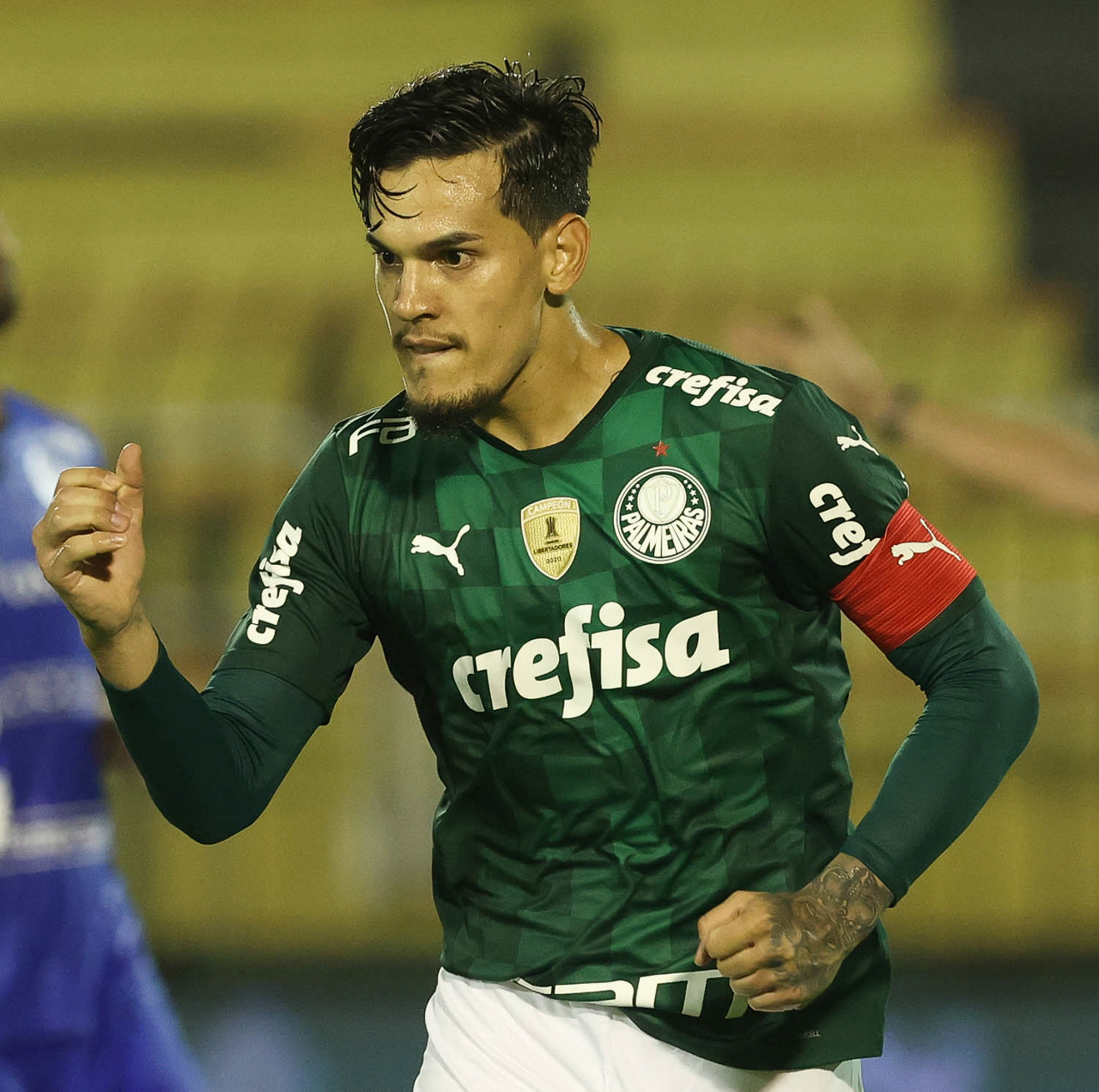 O jogador Gustavo Gómez, da SE Palmeiras, comemora seu gol contra a equipe do SC São Bento, durante partida válida pela terceira rodada, do Campeonato Paulista, Série A1, no Estádio Raulino de Oliveira. (Foto: Cesar Greco)