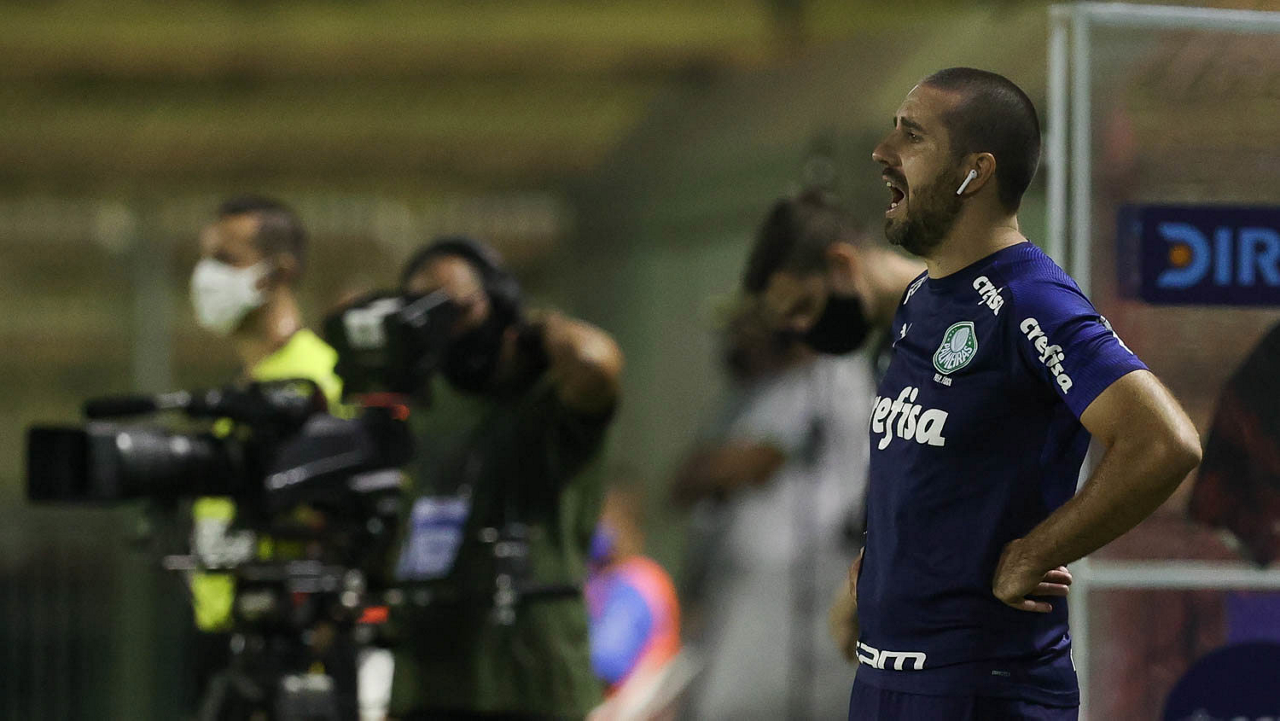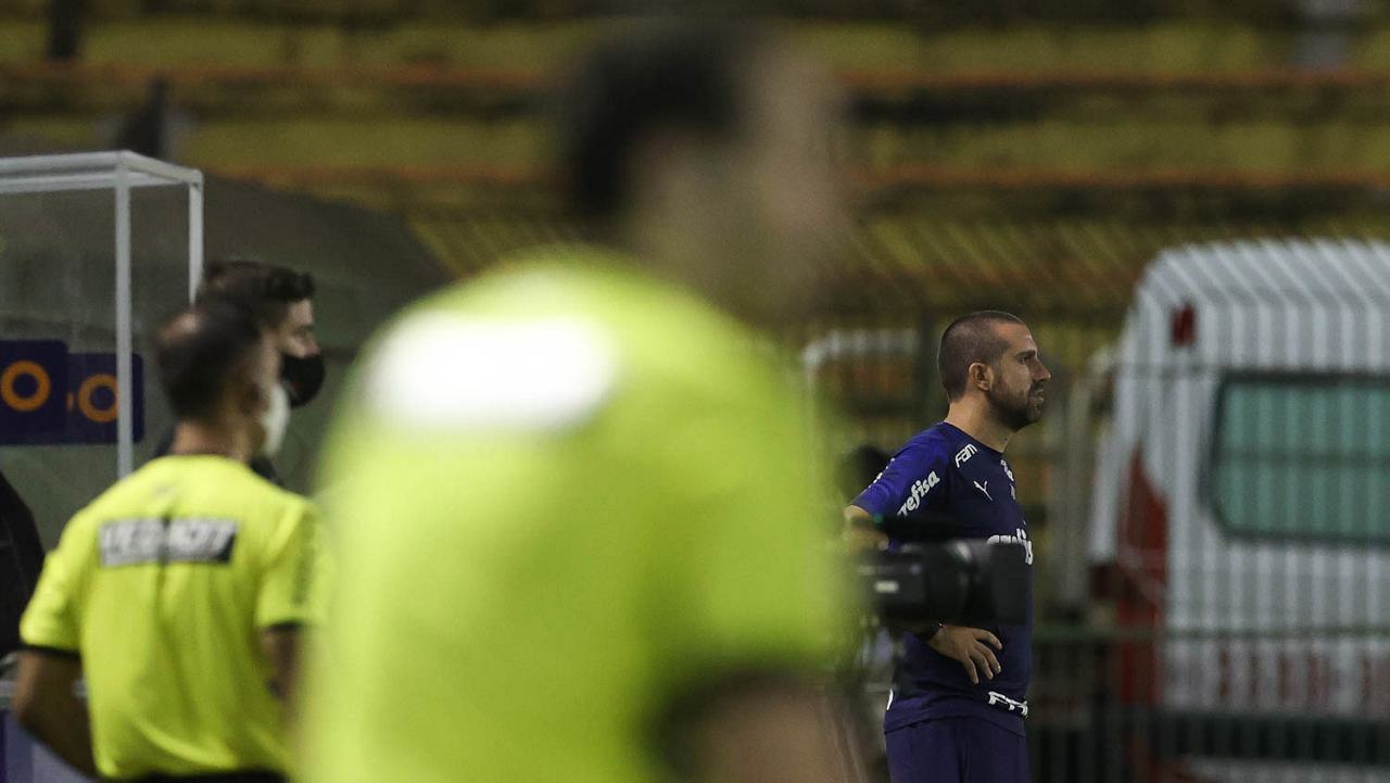 O preparador físico João Martins, da SE Palmeiras, em jogo contra a equipe do SC São Bento, durante partida válida pela terceira rodada, do Campeonato Paulista, Série A1, no Estádio Raulino de Oliveira. (Foto: Cesar Greco)