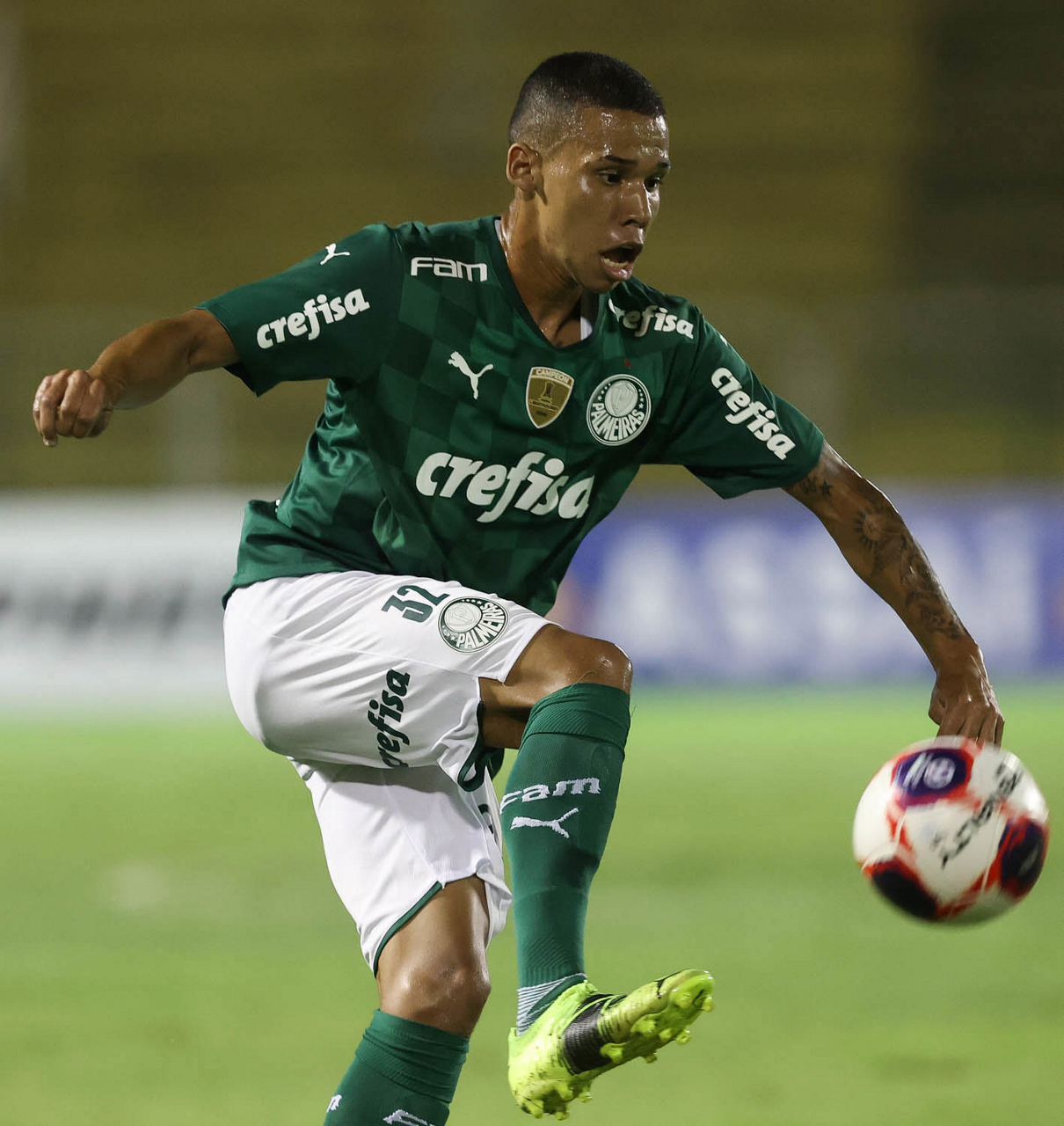 O jogador Newton, da SE Palmeiras, em jogo contra a equipe do SC São Bento, durante partida válida pela terceira rodada, do Campeonato Paulista, Série A1, no Estádio Raulino de Oliveira. (Foto: Cesar Greco)
