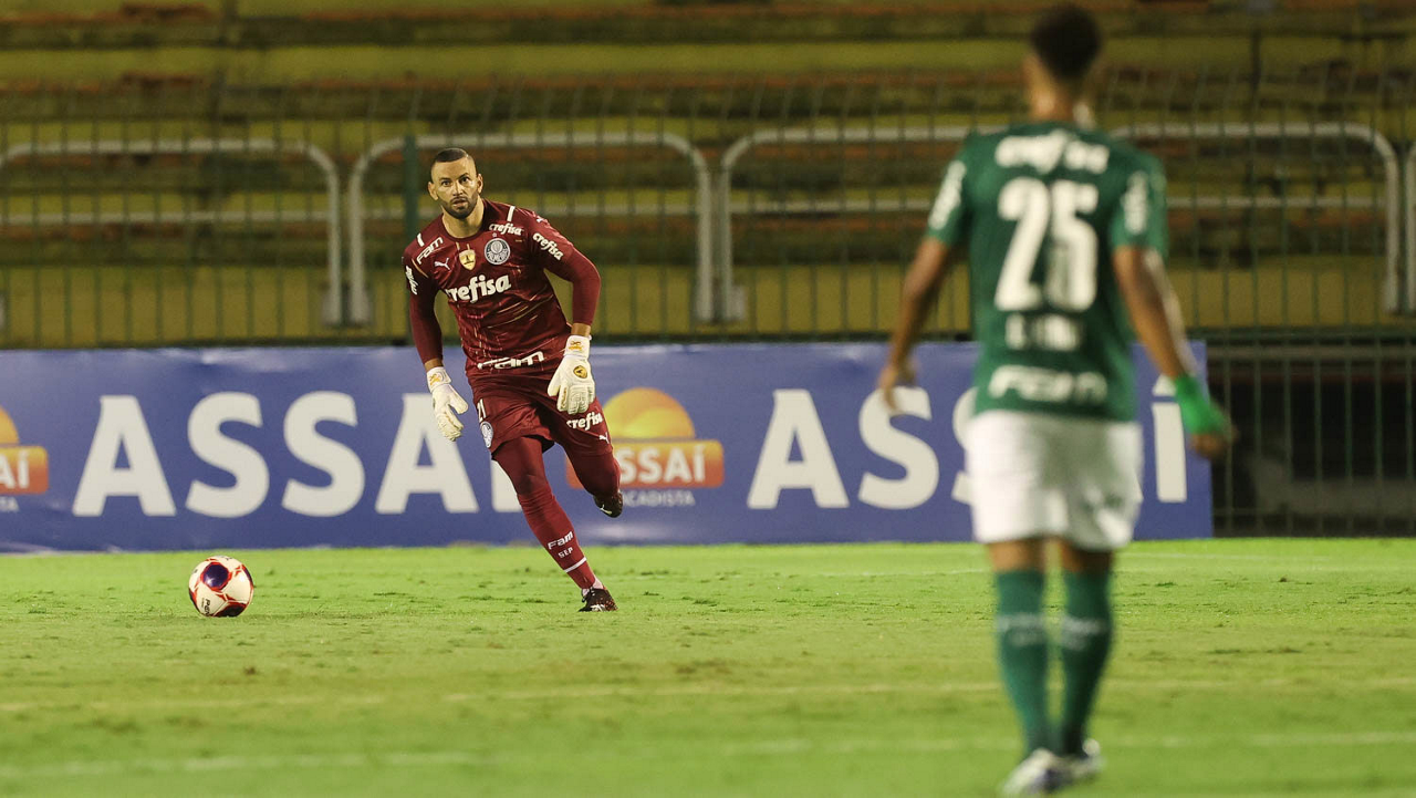 O goleiro Weverton, da SE Palmeiras, em jogo contra a equipe do SC São Bento, durante partida válida pela terceira rodada, do Campeonato Paulista, Série A1, no Estádio Raulino de Oliveira. (Foto: Cesar Greco)