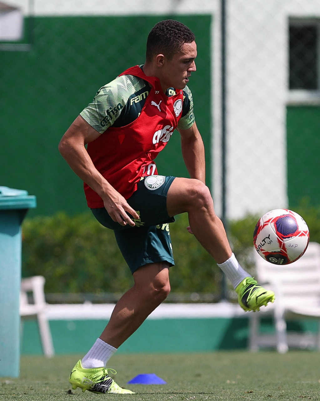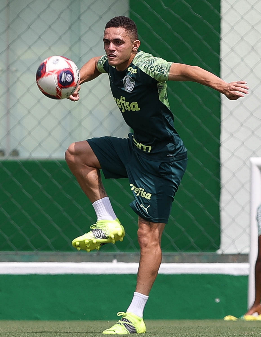 O jogador Vitinho, da SE Palmeiras, durante treinamento, na Academia de Futebol. (Foto: Cesar Greco)