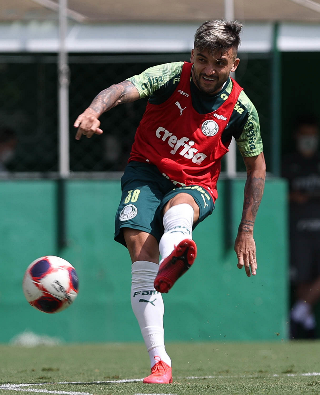O joagdor Fabinho, da SE Palmeiras, durante treinamento, na Academia de Futebol. (Foto: Cesar Greco)