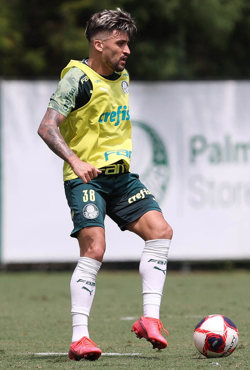 O jogador Benjamín Kuscevic, da SE Palmeiras, durante treinamento, na Academia de Futebol. (Foto: Cesar Greco)