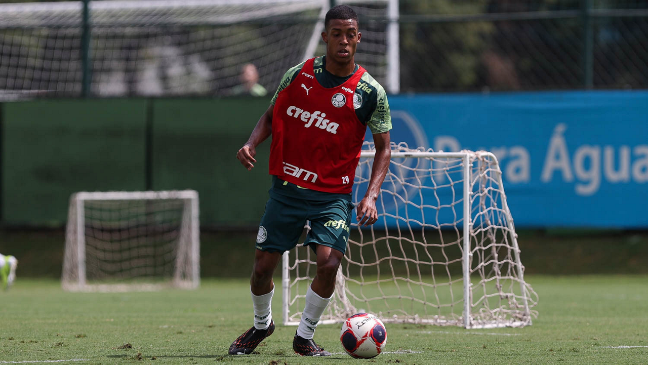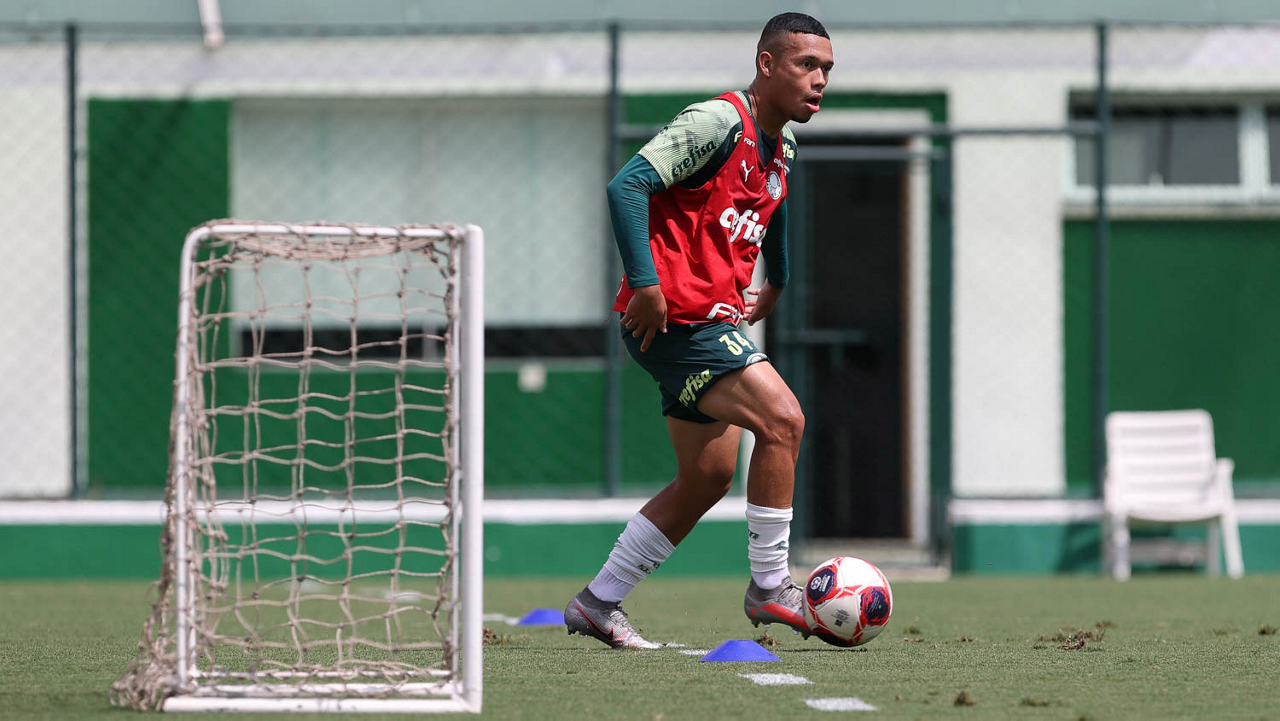 O jogador Gabriel Silva, da SE Palmeiras, durante treinamento, na Academia de Futebol. (Foto: Cesar Greco)