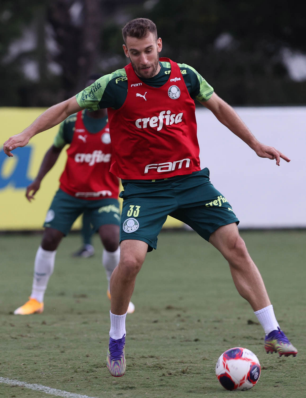 O jogador Patrick de Paula, da SE Palmeiras, durante treinamento, na Academia de Futebol. (Foto: Cesar Greco)
